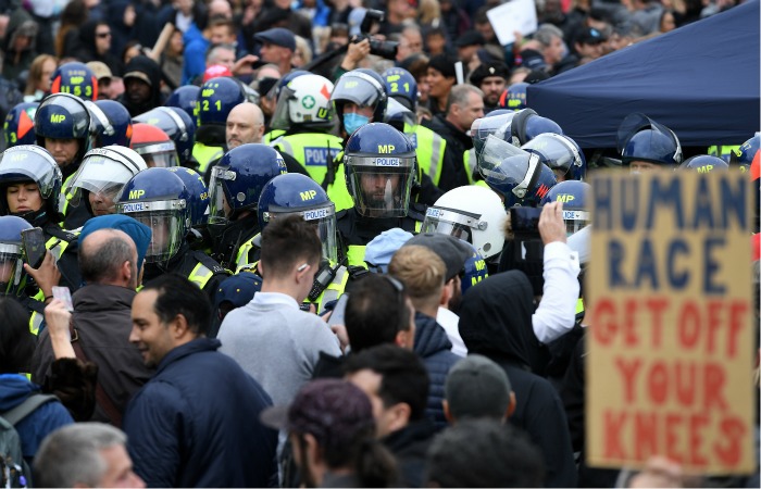 В центре Лондона во время акции протеста против коронавирусных ограничений произошли столкновения с полицией, передает телеканал BBC News.