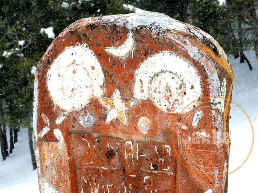 Конечно, наши исследования армянского вандализма не ограничились лишь одним Иреваном. Я исколесил половину Армении и документально зафиксировал все то, что меня интересовало. Так, например, я посетил село Арчут, расположенное в районе Беюк Гаракился. Согласно документам, еще в конце 19-го века в этом селе было 40 дворов и проживало 357 азербайджанцев. В советские времена численность населения достигла полутора тысяч человек. В селе было три кладбища. Однако в 1988 году коренное азербайджанское население было изгнано из села и сегодня там проживают одни армяне. Естественно, местную мечеть они сразу же разрушили. Однако на могильных плитах сохранились надписи на азербайджанском языке (арабской вязью и кириллицей).
