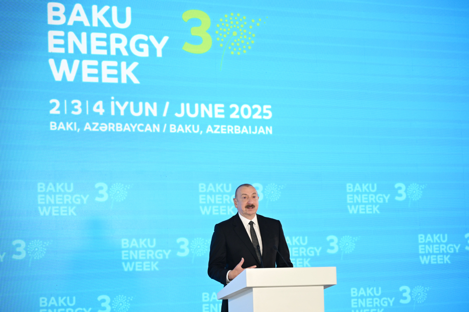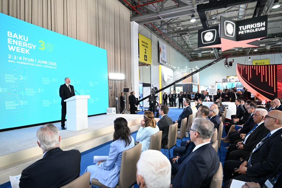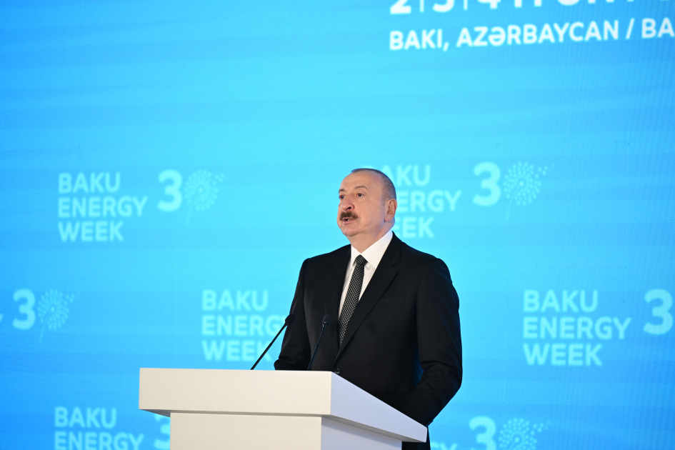 Президент Азербайджана Ильхам Алиев выступил на официальной церемонии открытия 30-й международной выставки Caspian Oil and Gas, 13-й Caspian Power и 30-го Baku Energy Forum, проводимых в рамках Бакинской энергетической недели в Баку Экспо Центре.