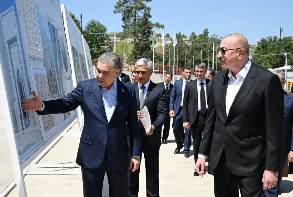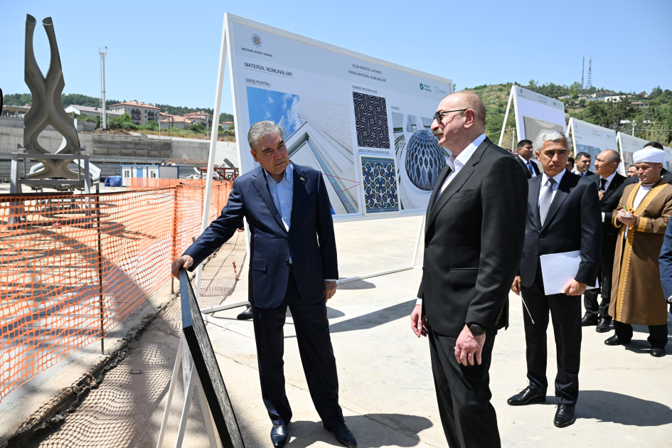 В тот же день лидеры ознакомились с ходом строительства Новой Шушинской мечети. Помощник президента Анар Алакбаров доложил о ходе работ.