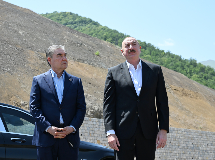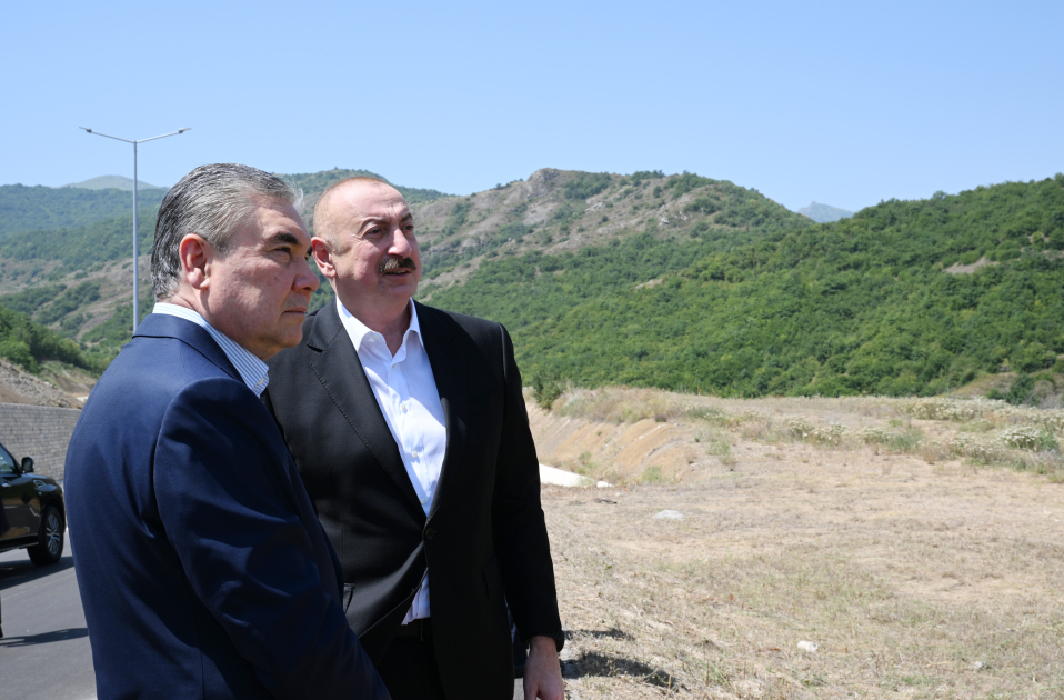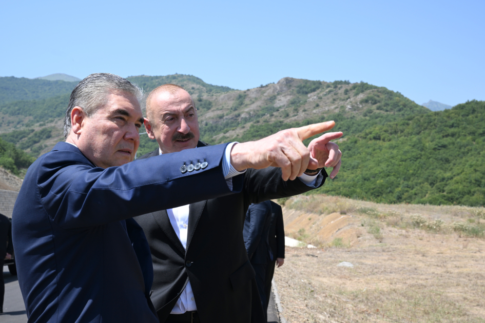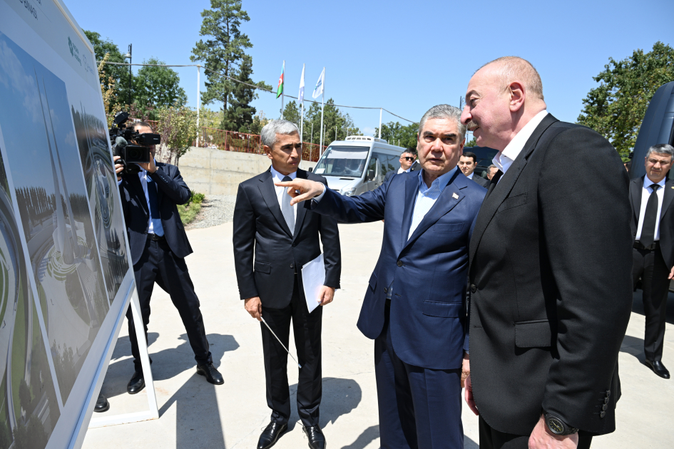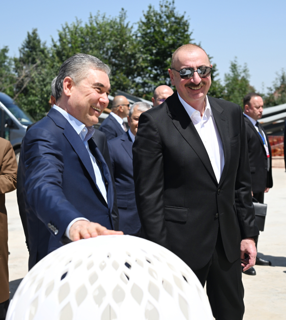 Президент Азербайджана Ильхам Алиев и председатель Халк Маслахаты Туркменистана Гурбангулы Бердымухамедов посетили первый жилой комплекс, построенный в Шуше.