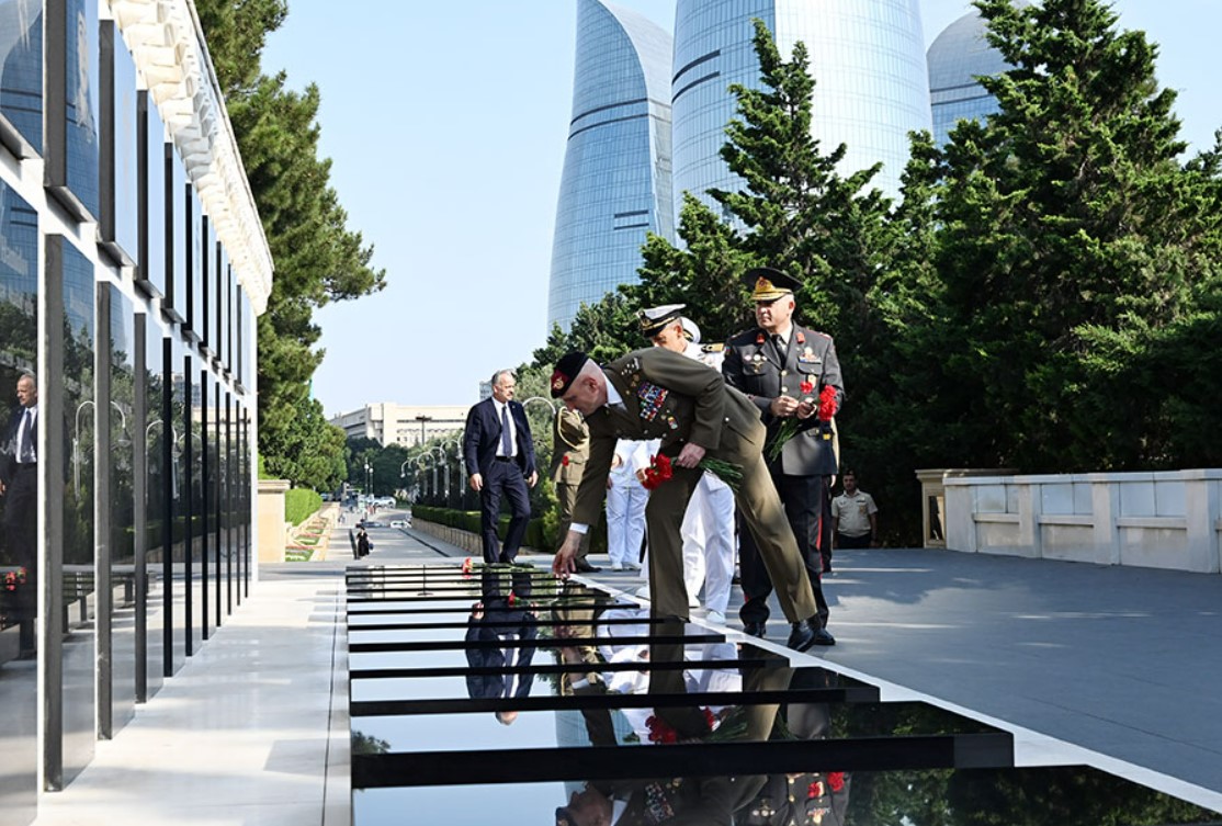 Сначала гости посетили Аллею шехидов, возложив цветы на могилы наших сограждан, отдавших жизнь во имя независимости и территориальной целостности Азербайджана, и венок к мемориалу «Вечный огонь».