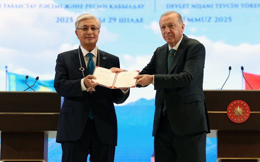 Глава Турецкого государства Реджеп Тайип Эрдоган вручил лидеру Казахстана Касым-Жомарту Токаеву государственную награду Турции — орден «Devlet Nişanı». Об этом сообщает «Анадолу».