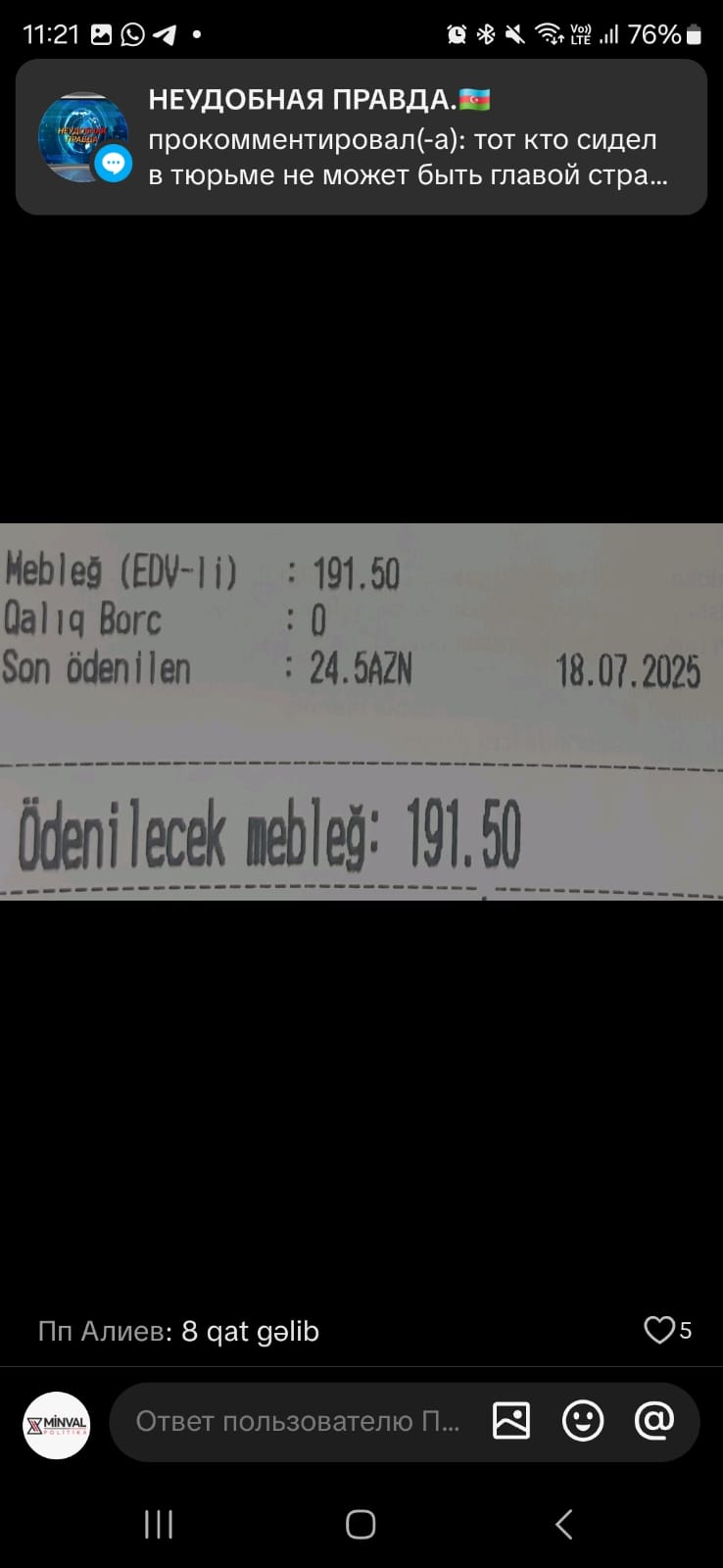 Данное обращение могло бы остаться без внимания если бы не одно «но». Дело в том, что видео собрало свыше 1400 комментариев. Все пользователи соцсети в один голос согласились с Размоваром, описывая как дорого им пришлось заплатить за свет за июль. Они не понимают, как получилось, что всегда в это время года платили по 40-50 манатов, а текущем году здолжали около 100 манатов. Среди пользователей нашлись и те, кто задолжал более 200 и 300 манатов.