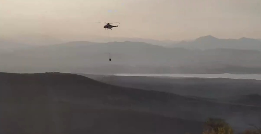 Борьба с пожаром в направлении села Ханлыглар продолжается.