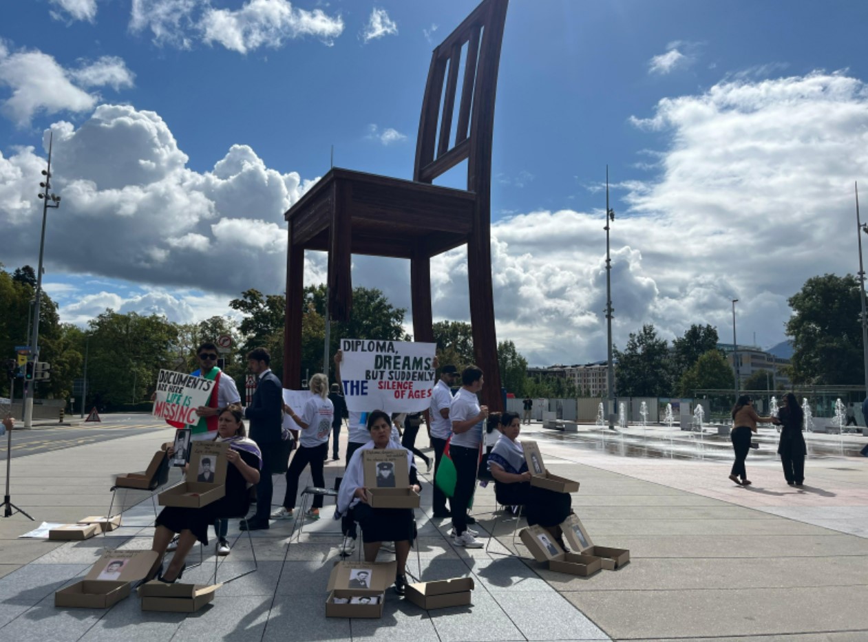 30 августа, в Международный день пропавших без вести, Общественное объединение «Семьи пропавших без вести в Карабахе» провело акцию на площади «Дворец наций» перед зданием Европейского офиса в Женеве. Мероприятие состоялось у символического памятника «Сломанный стул», который олицетворяет страдания людей от всех форм вооружённого насилия. Об этом сообщает АПА.