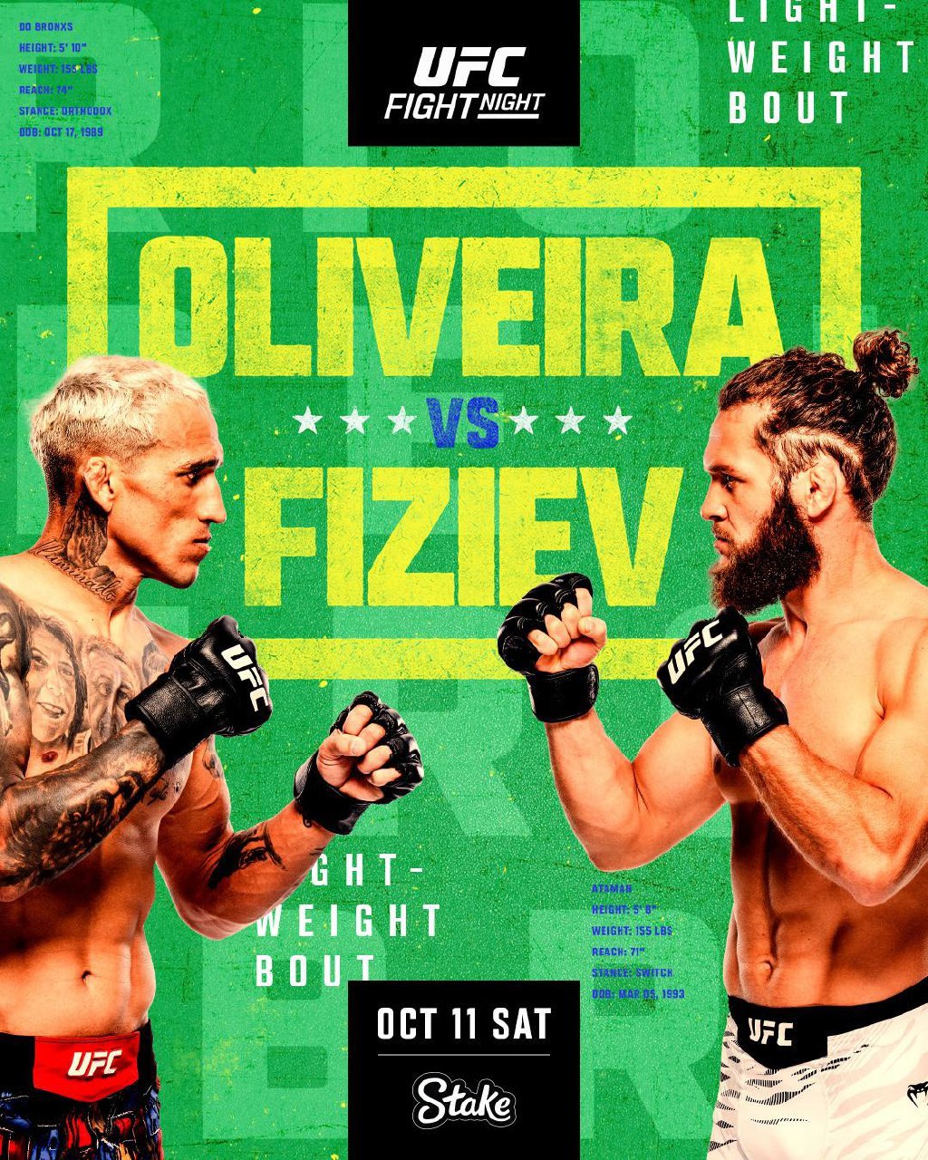 Турнир пройдёт под эгидой UFC, а бой Оливейра — Физиев обещает стать одним из самых ожидаемых событий вечера.