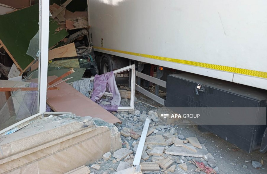 В Геранбойском районе раскрыты подробности ДТП с фурой Mercedes, которая врезалась в магазин на трассе Баку–Газах.
