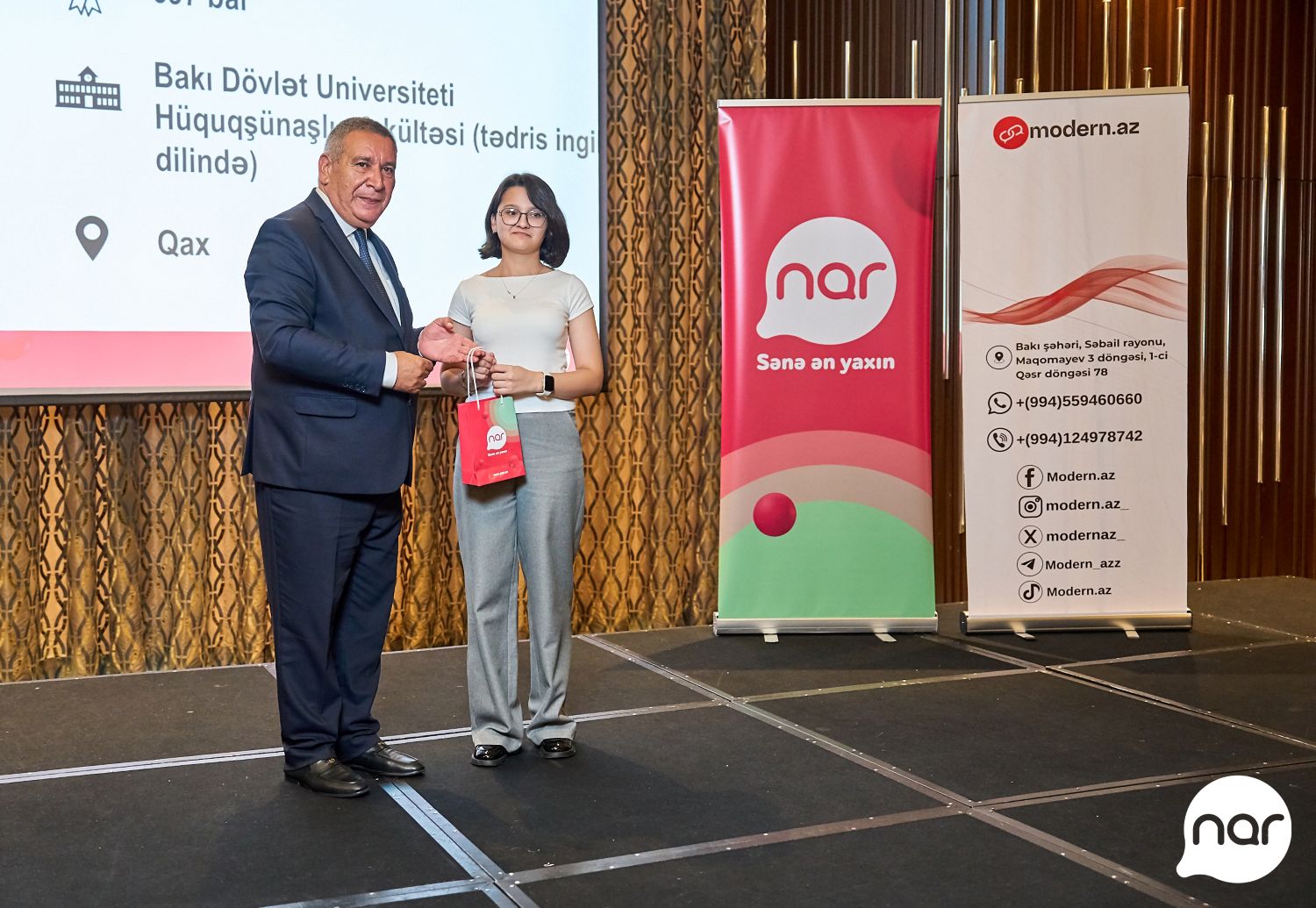 Оператор мобильной связи «Nar» сохраняющий позицию самого доступного в стране, продолжает поддержку долгосрочных социальных инициатив. В 2024–2025 учебном году компания наградила десять абитуриентов, показавших наивысшие результаты на вступительных экзаменах в вузы, особыми призами. В рамках проекта, реализованного при поддержке Информационного агентства Modern.az, победителям были вручены золотые номера, смартфоны и баланс в размере 700 AZN.