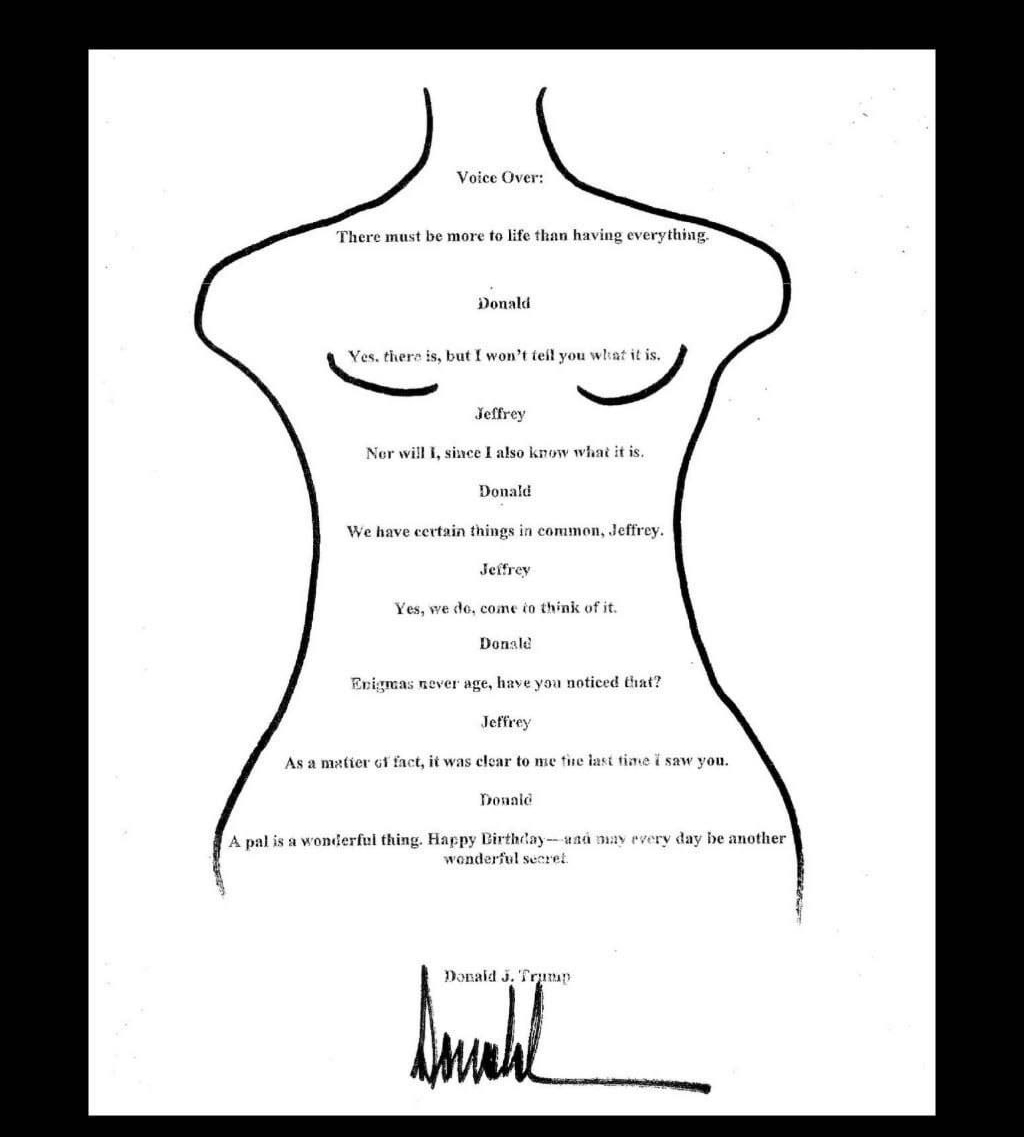 Так она прокомментировала публикацию Wall Street Journal, в которой утверждалось, что адвокаты, представляющие наследство покойного Эпштейна, предоставили Конгрессу поздравление от имени Трампа, якобы написанное в 2006 году к 50-летию финансиста. Издание утверждало, что вместе с текстом было приложено изображение обнажённой женщины.