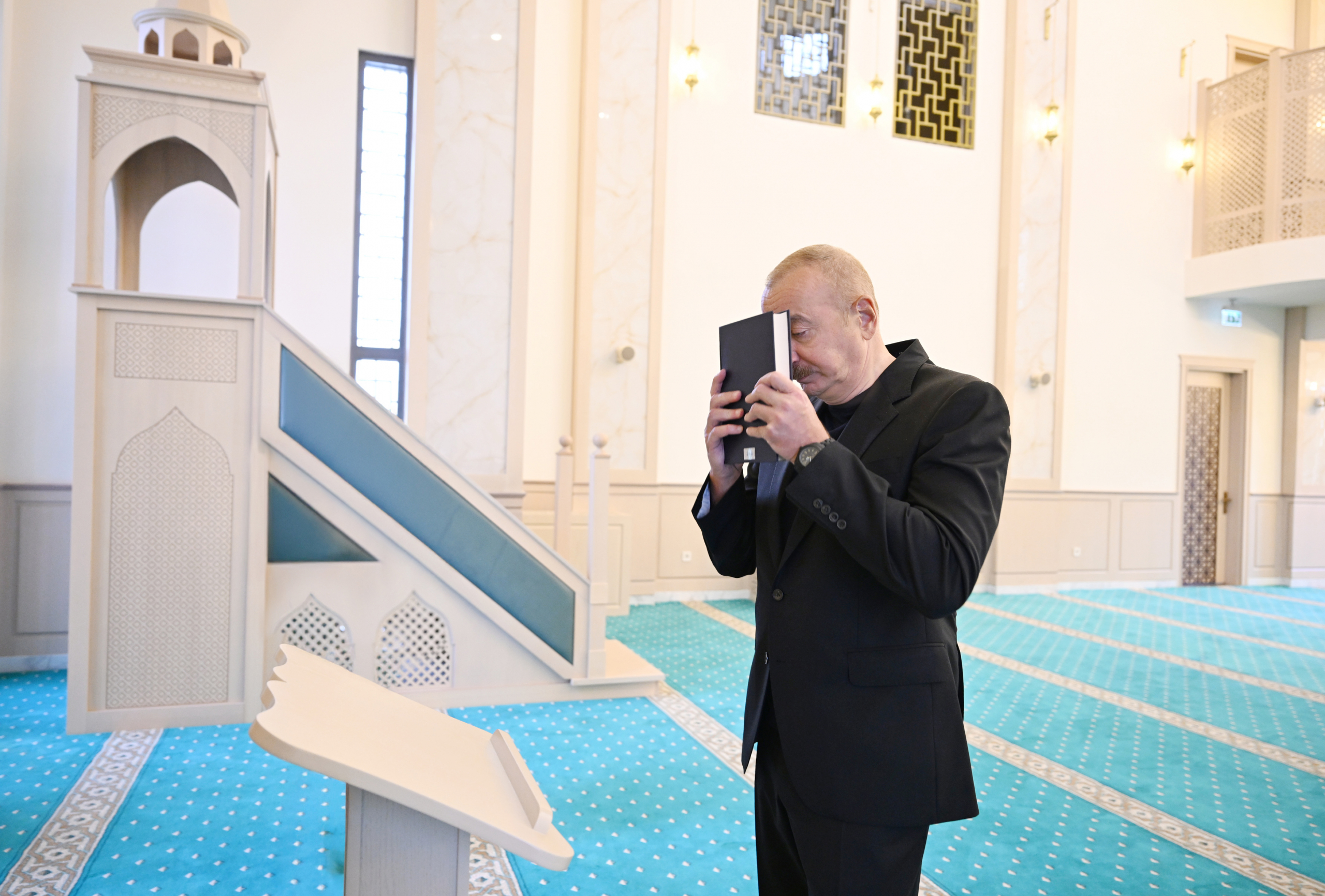 Президент Азербайджана Ильхам Алиев принял участие в открытии мечети, построенной в поселке Гадрут Ходжавендского района.