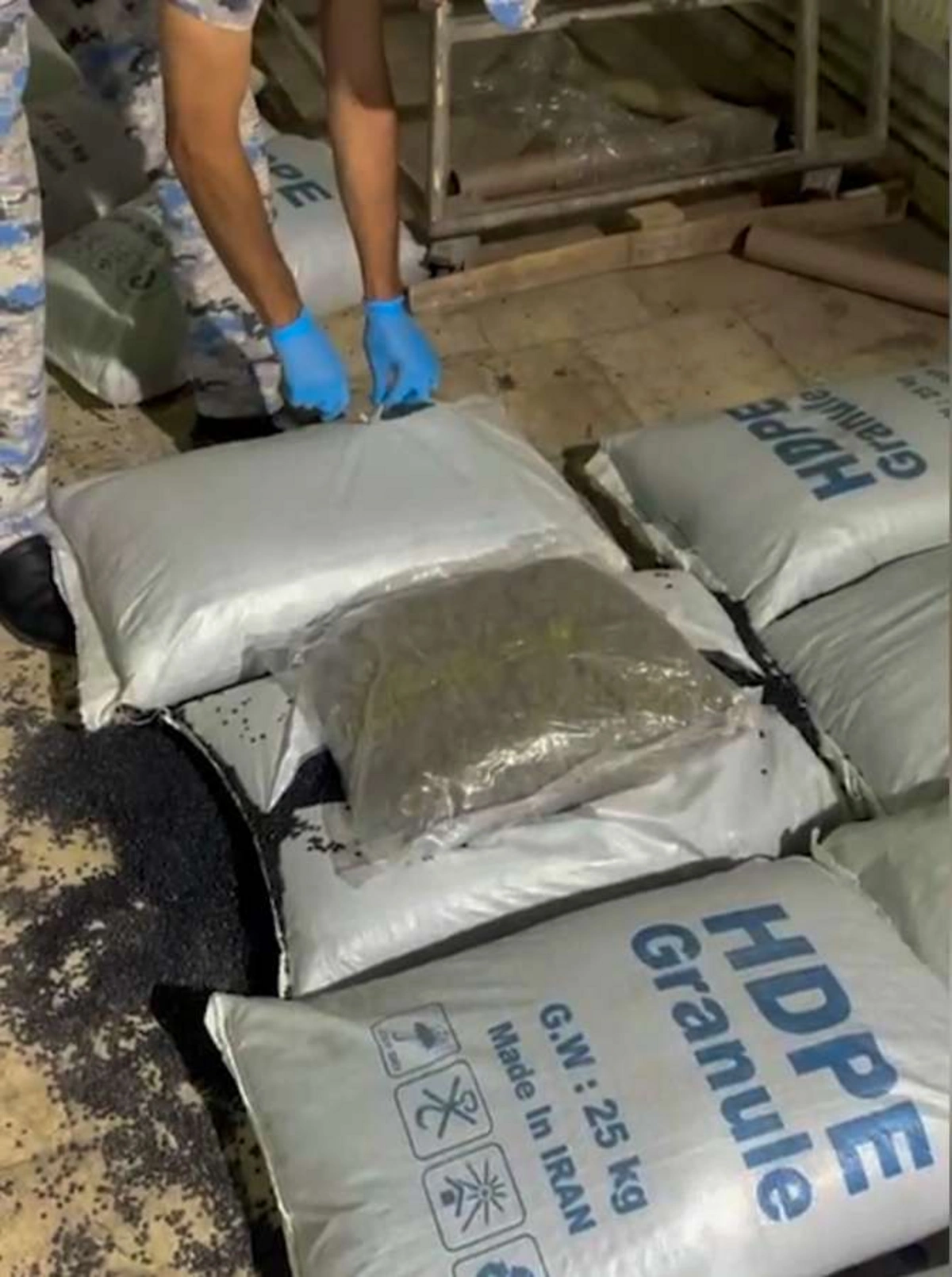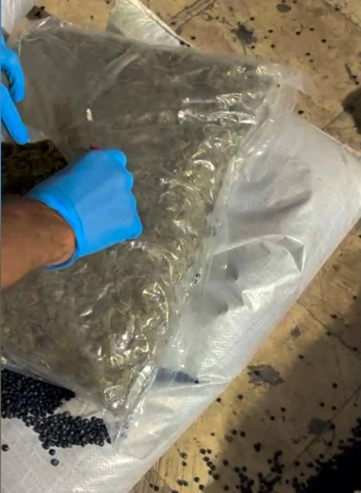 В ходе проверки в 30 мешках груза было найдено особо крупное количество наркотического средства, тщательно спрятанное от таможенного контроля.