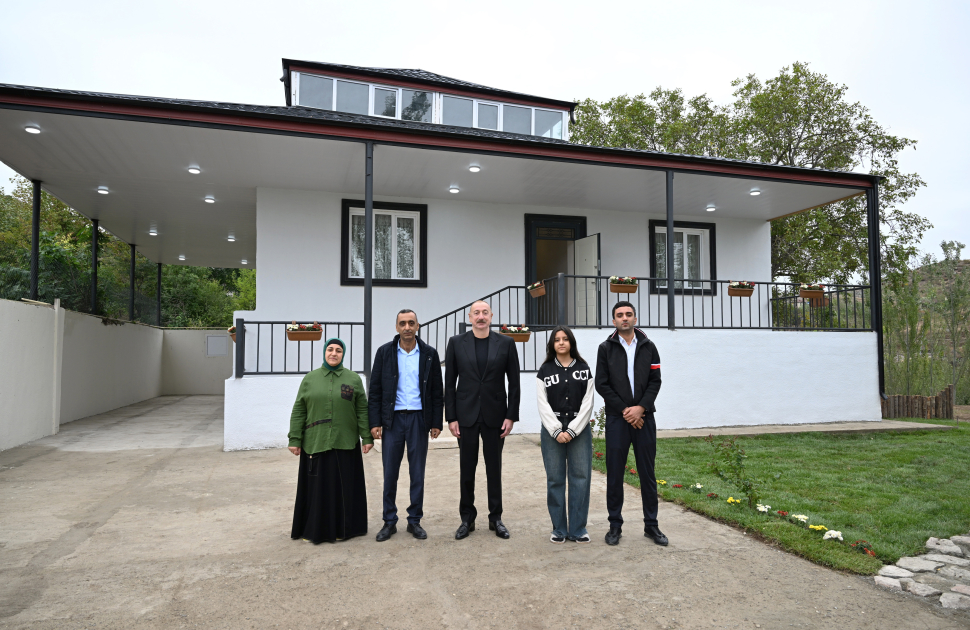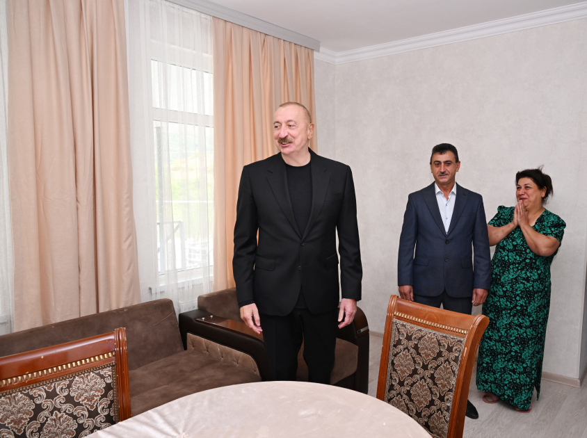 14 семей (55 человек) уже переехали в село. Глава государства посетил дом Барата Новрузова, переехавшего в село, и побеседовал с членами его семьи.
