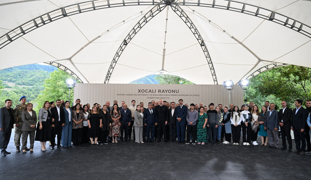 Президент Азербайджана Ильхам Алиев встретился с жителями сел Бадара, Дашбулаг, Сеидбейли и Шушакенд в селе Бадара Ходжалинского района.