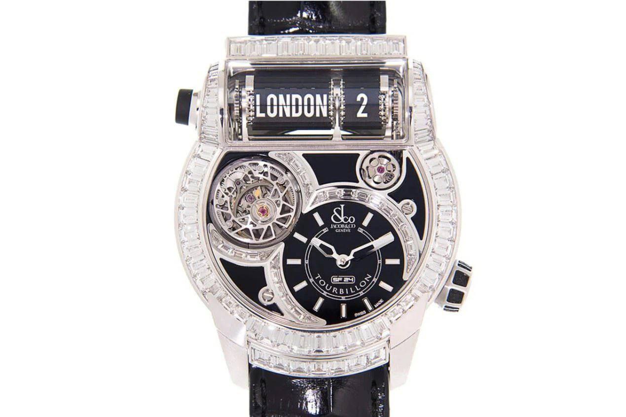 Модель Jacob & Co из серии Epic SF24 изготовлена из 18-каратного белого золота, а корпус инкрустирован 104 бриллиантами. Всего в серии выпущено 18 экземпляров, из которых все уже распроданы. Первоначальная стоимость таких часов составляла около 497 тысяч долларов.