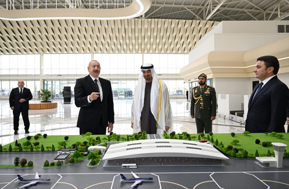 В международном аэропорту Физули президенту Объединенных Арабских Эмиратов была представлена информация о международных аэропортах Физули, Зангилан и Лачин, построенных на наших освобожденных территориях.