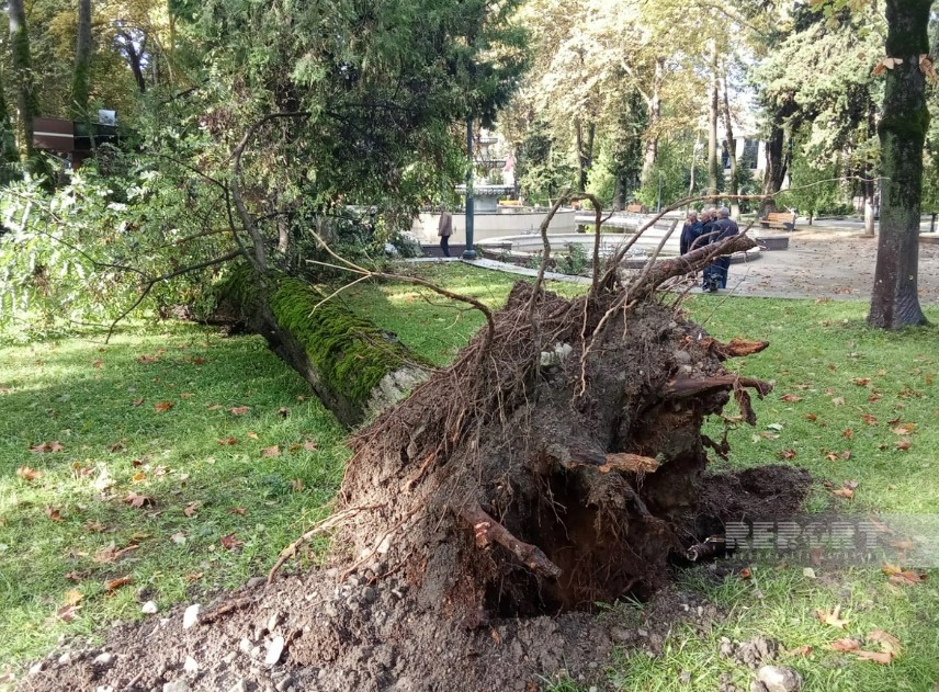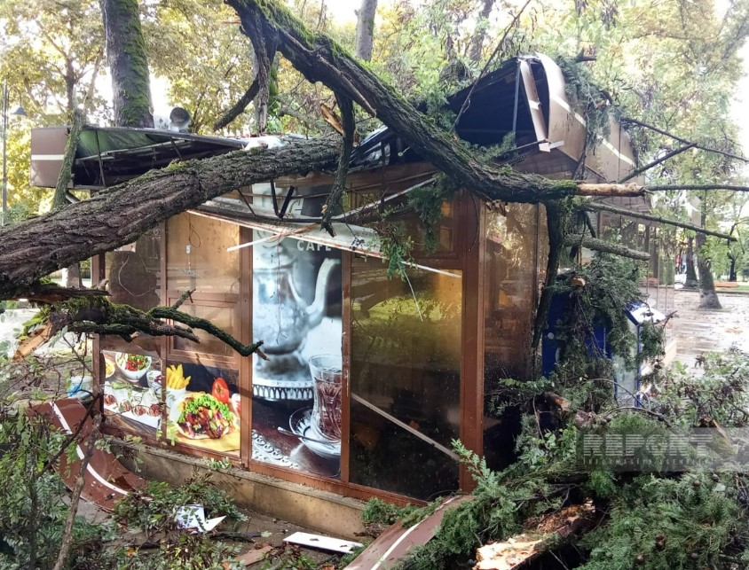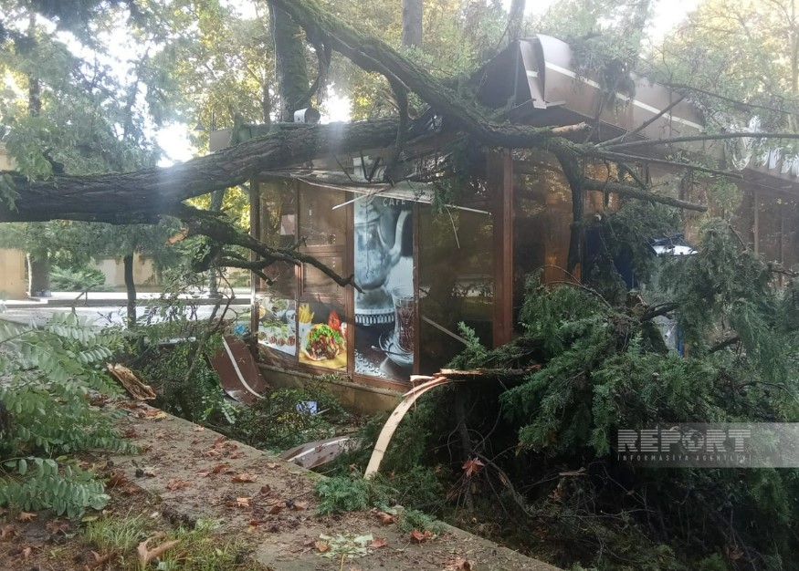 В Исмаиллинском районе Азербайджана сильный ветер привёл к падению крупного дерева на объект общепита, сообщает Report.