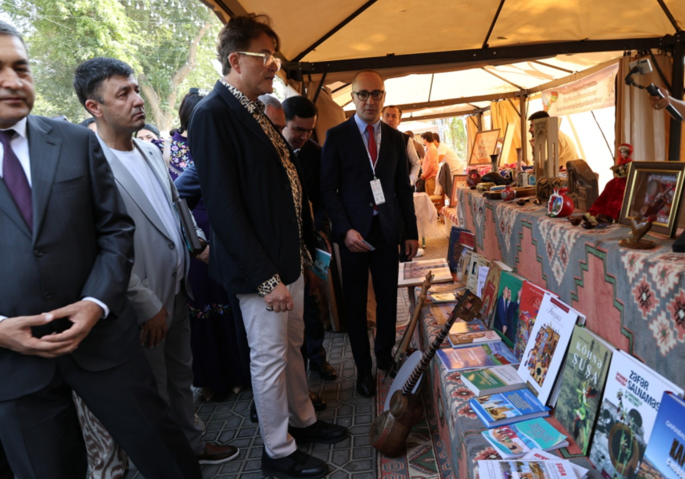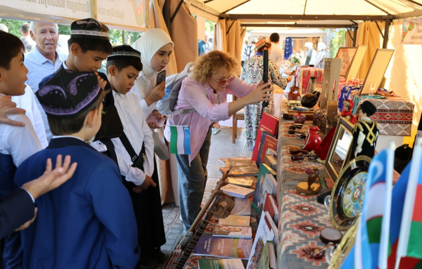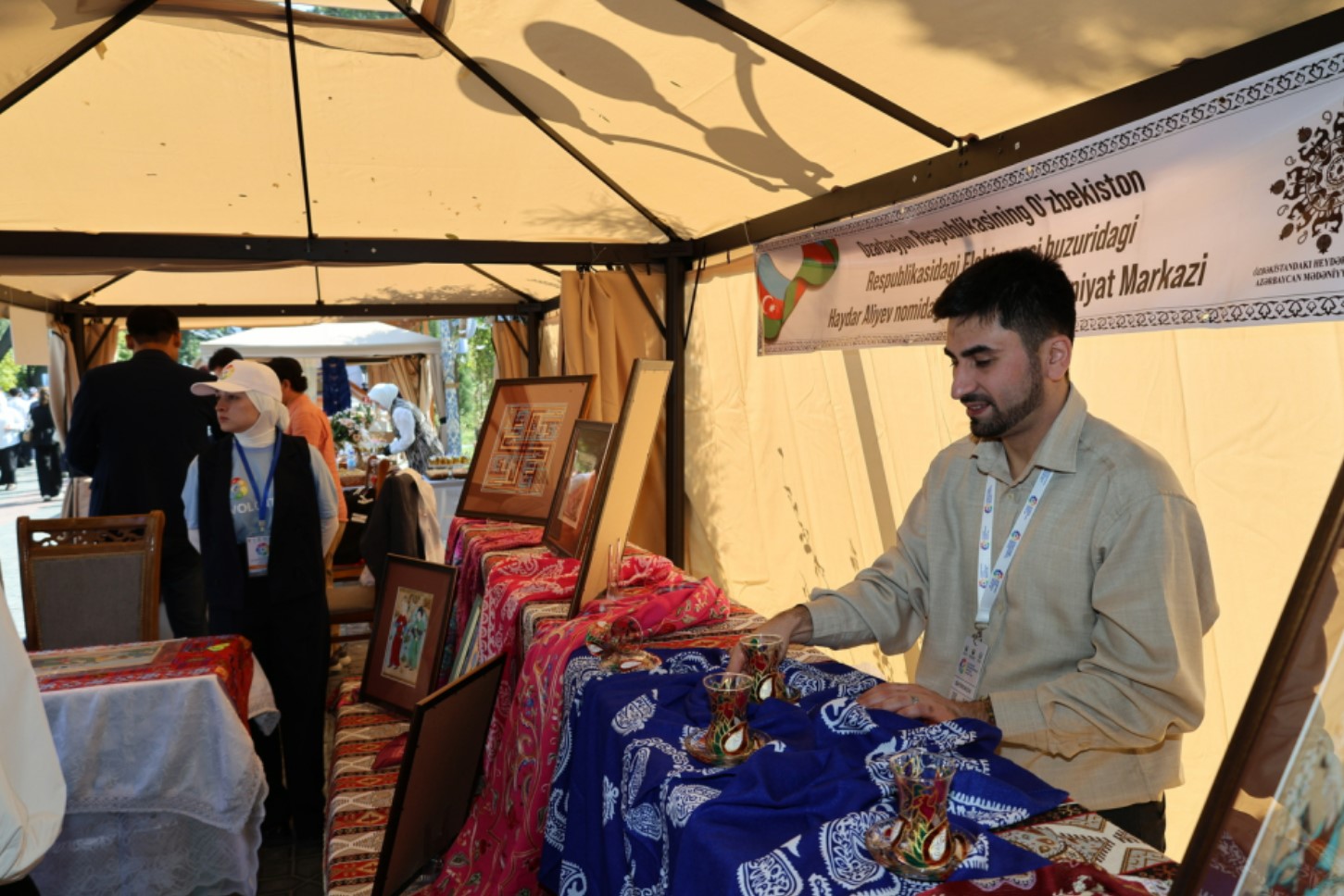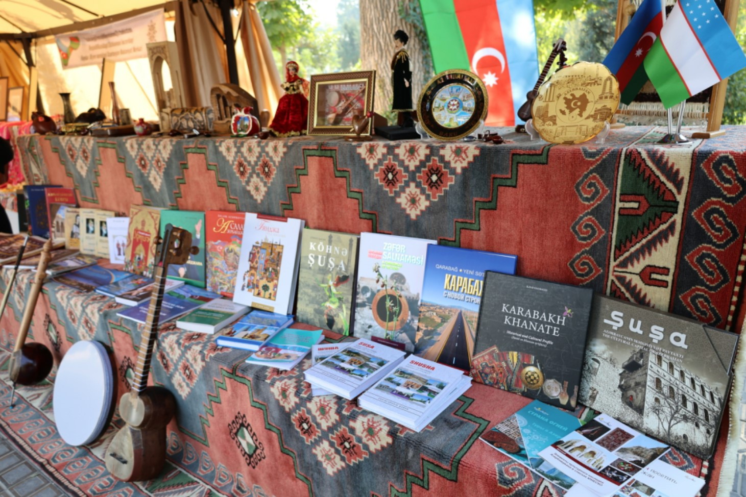 В уголке Центра были представлены издания об азербайджанской культуре, истории и государственности, книги на узбекском языке, сувениры, изделия ручной работы, ковры и другие изделия мастеров Азербайджана.