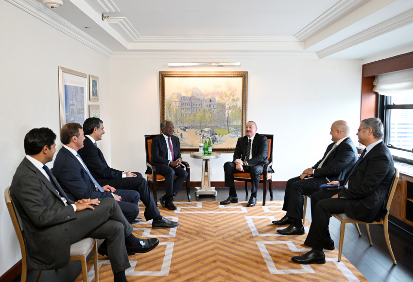 Президент Азербайджана Ильхам Алиев встретился в Нью-Йорке с учредителем, председателем и генеральным исполнительным директором компании Global Infrastructure Partners, управляющей инфраструктурными инвестициями, Адебайо Огунлеси.