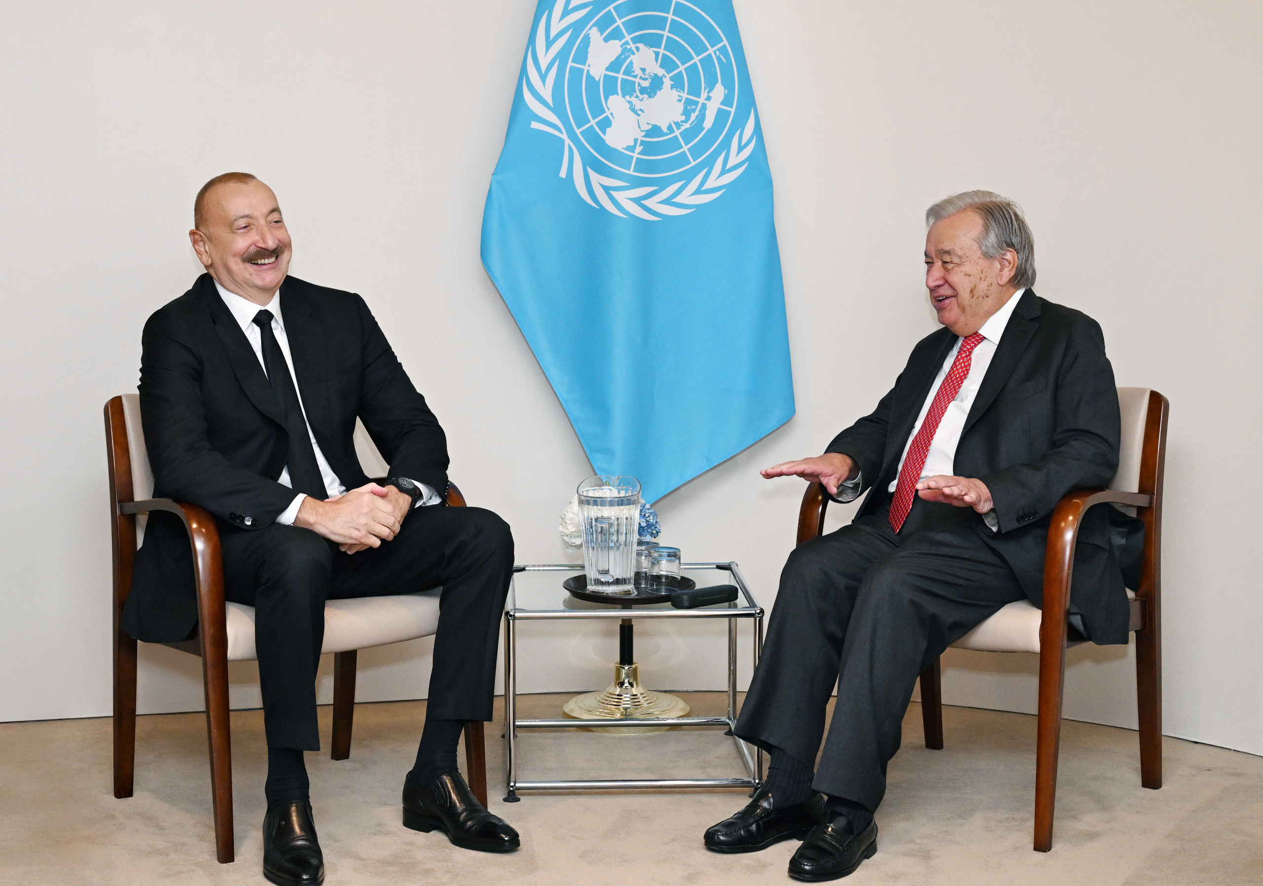 Президент Азербайджана Ильхам Алиев встретился в штаб-квартире ООН с Генеральным секретарем Организации Объединенных Наций Антониу Гутерришем.