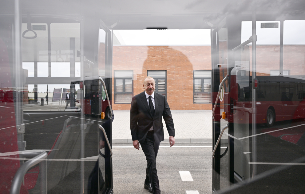 Президент Азербайджана Ильхам Алиев 27 сентября принял участие в церемонии открытия Гянджинского автопарка ООО BakuBus.