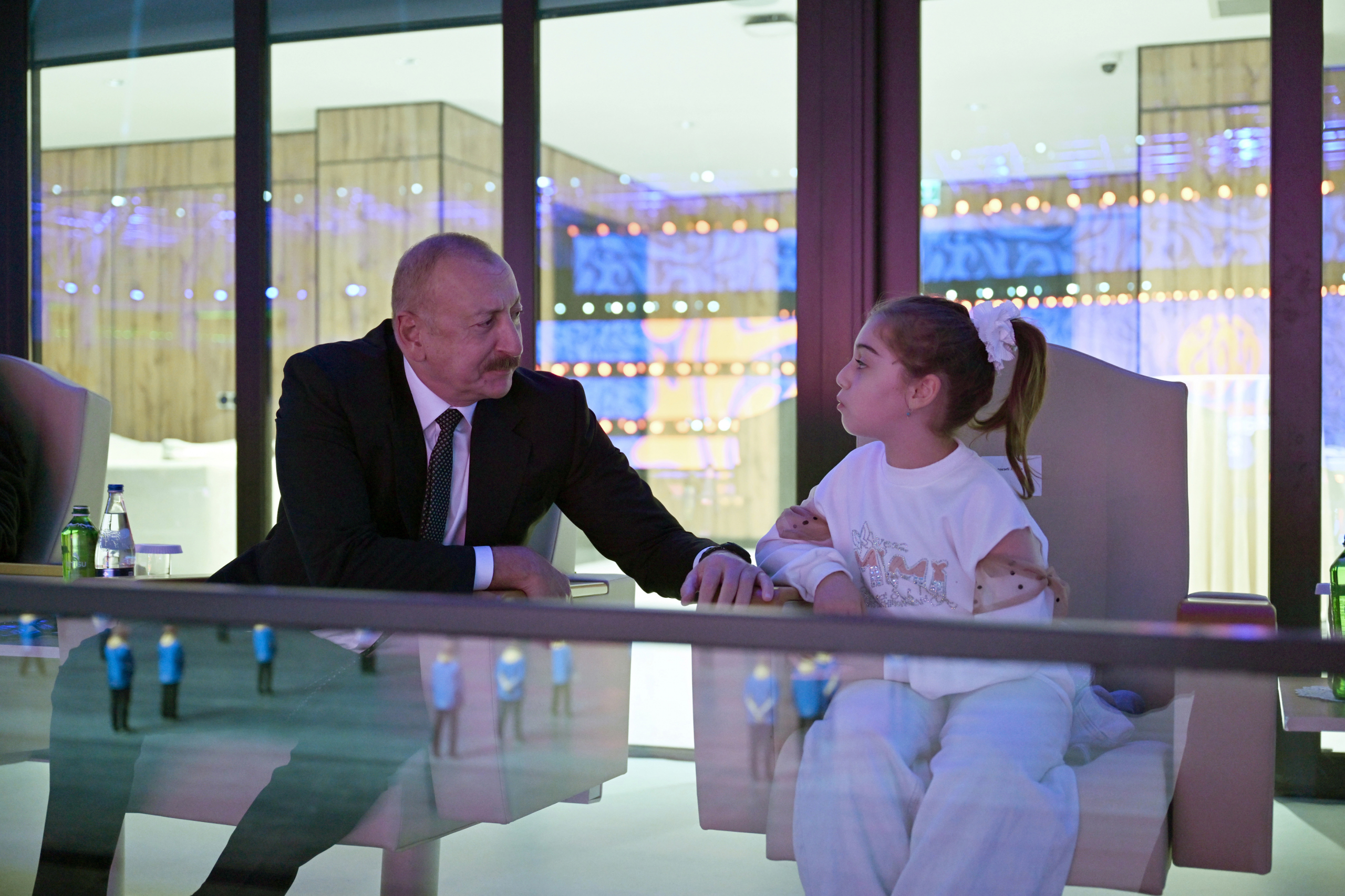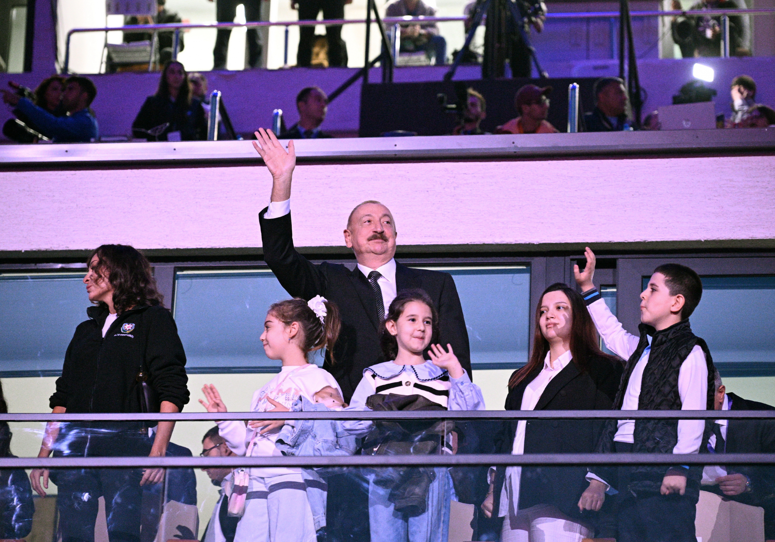 Перед началом церемонии открытия Игр СНГ президент Азербайджана Ильхам Алиев и первая леди Мехрибан Алиева встретились с детьми, потерявшими родителей, членов семьи и близких родственников, а также получивших ранения в результате ракетных ударов по Гяндже во время Отечественной войны.