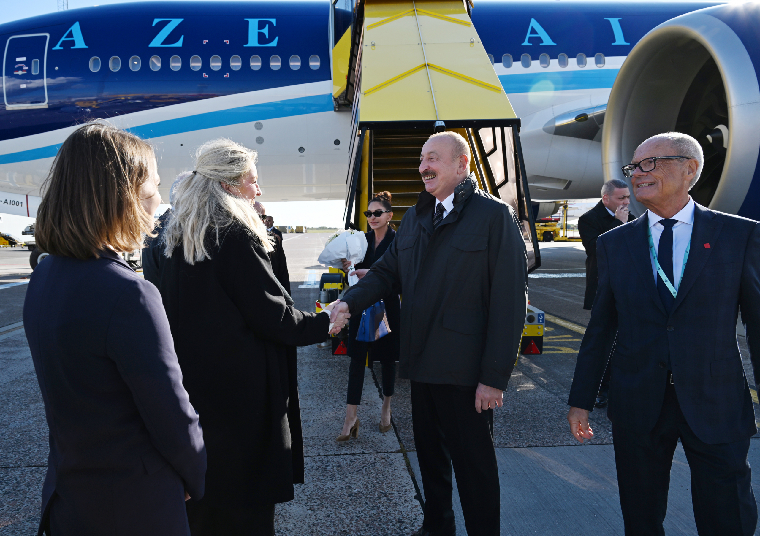 В международном аэропорту Копенгагена президента Ильхама Алиева и первую леди Мехрибан Алиеву встречали официальные лица.