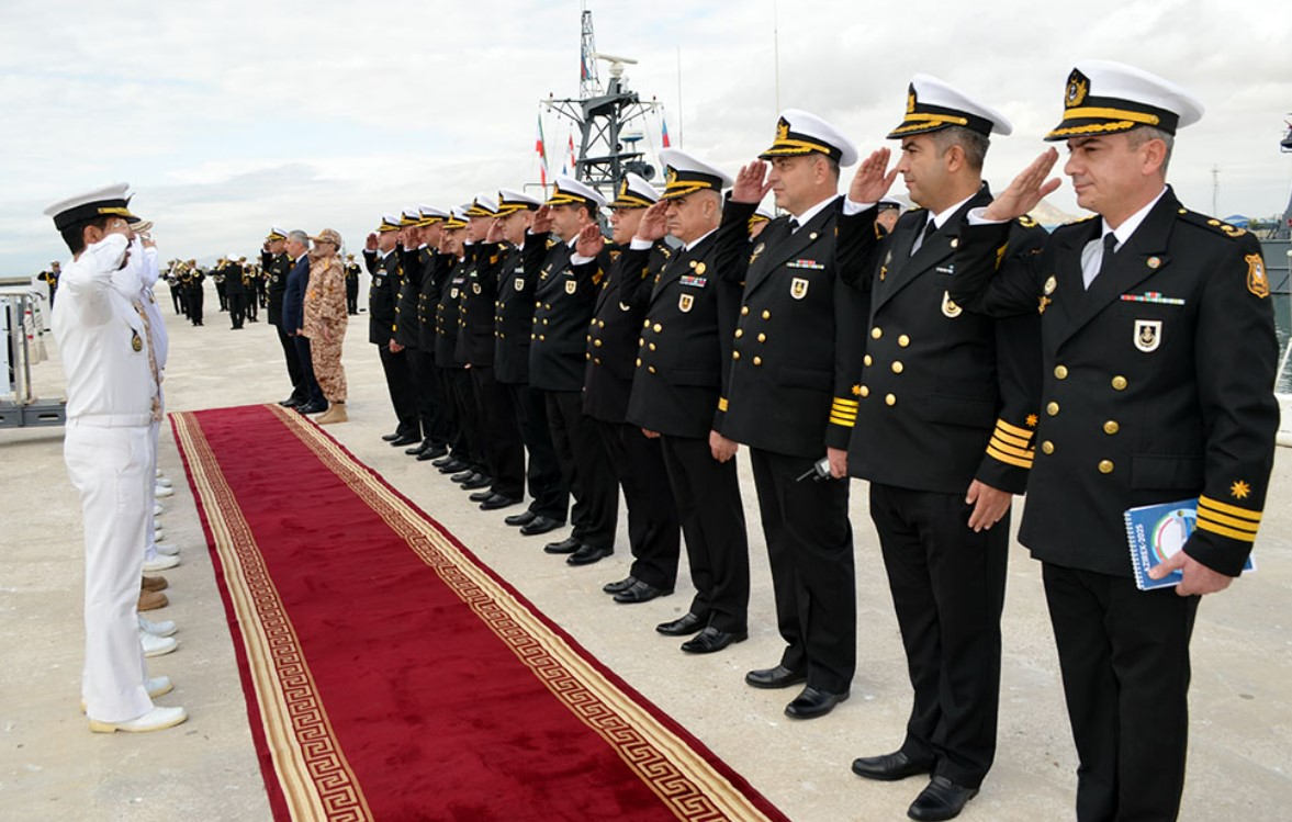 Состоялась торжественная церемония встречи кораблей. В мероприятии принимали участие командование ВМС Азербайджана и другие официальные лица.