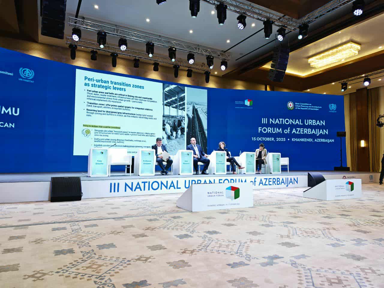 Сегодня в городе Ханкенди продолжает свою работу III Национальный Градостроительный Форум, организованный Государственным комитетом по градостроительству и архитектуре Азербайджана в партнерстве с Программой ООН по населенным пунктам (UN-Habitat). Форум проходит под девизом: «Климатоустойчивые и здоровые города: региональные партнерства и инновационные решения».