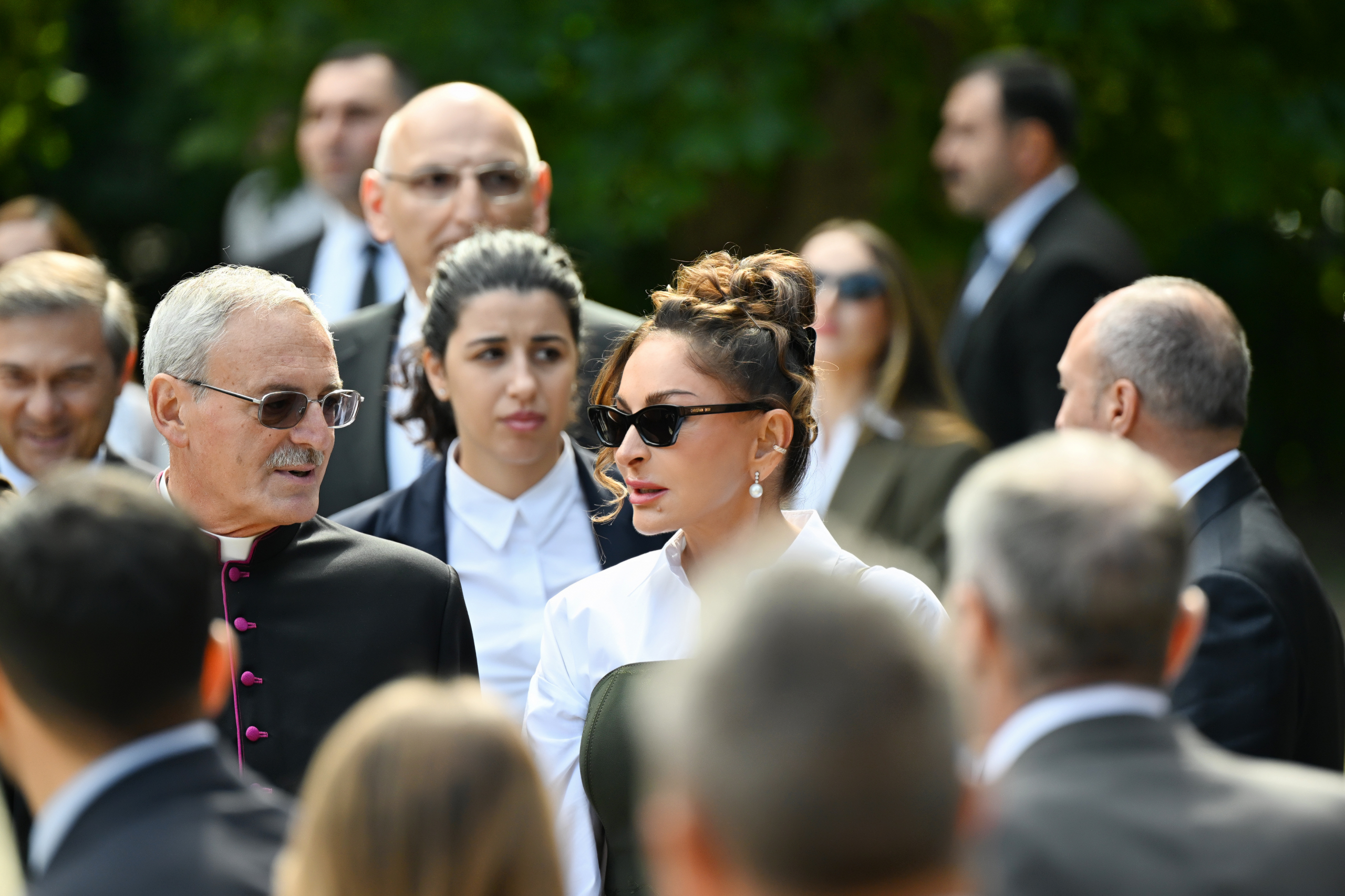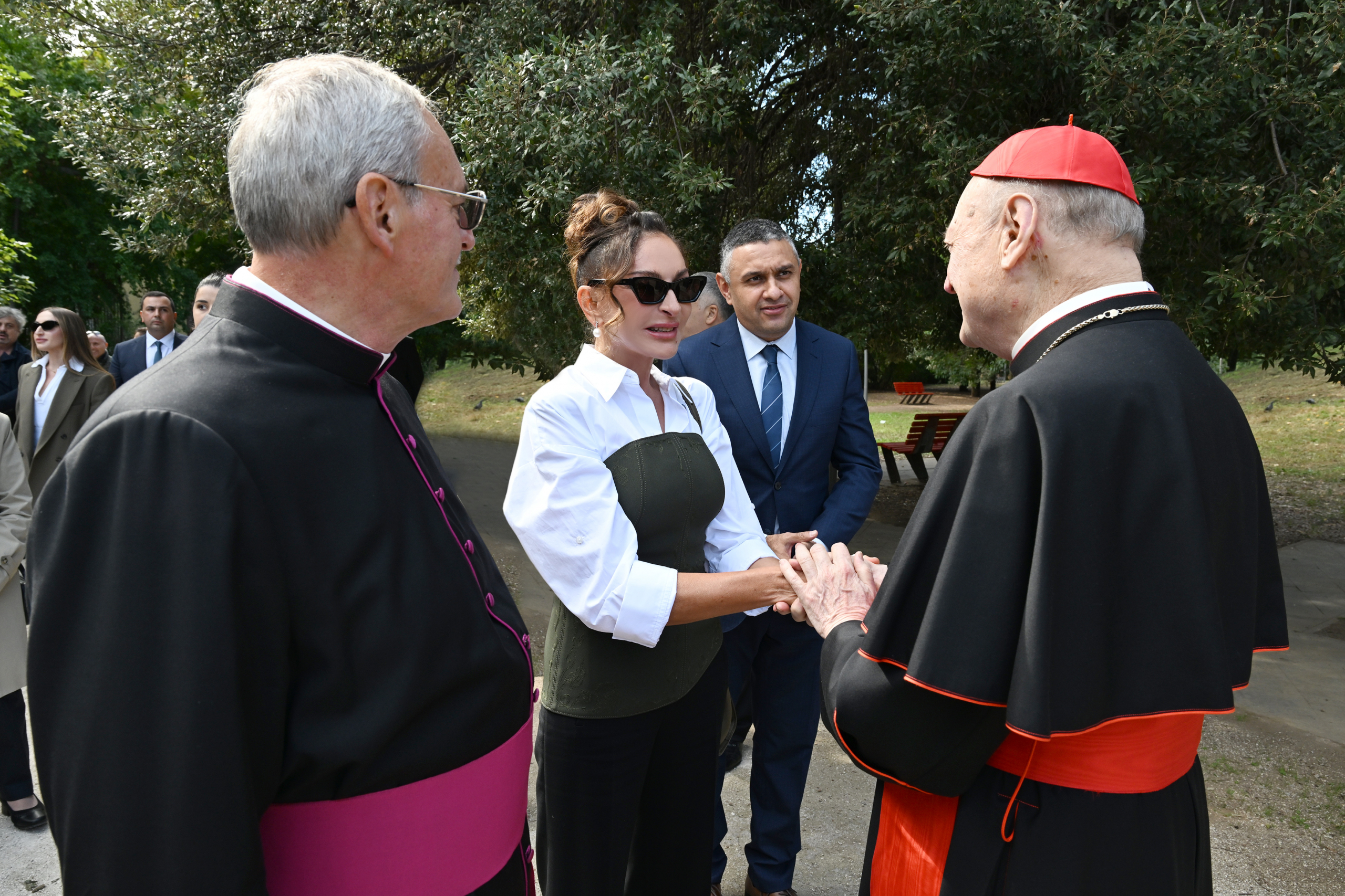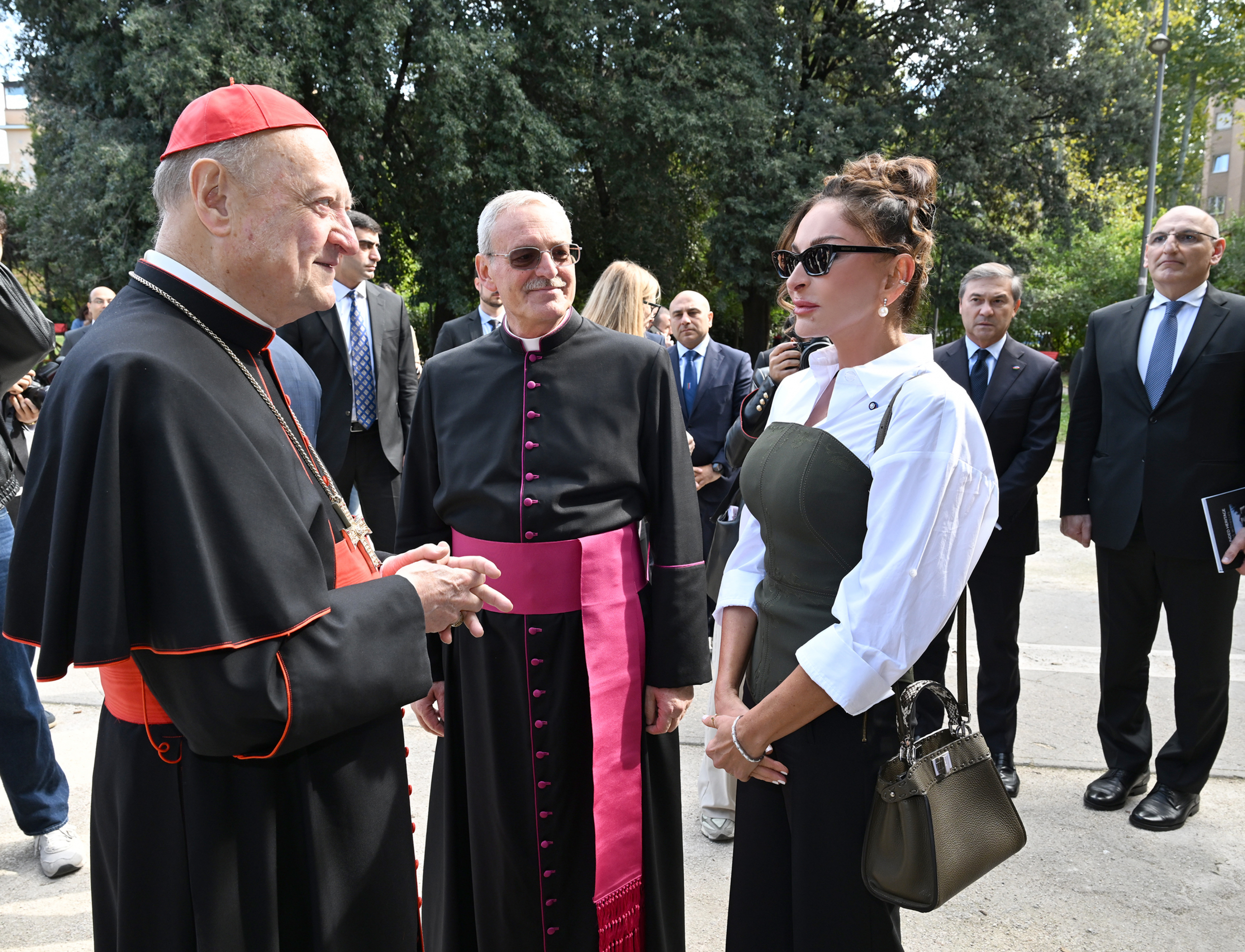 Первого вице-президента Мехрибан Алиеву встретили президент Папской комиссии по священной археологии монсеньор Паскуале Якобоне, бывший президент Папской комиссии по культуре и священной археологии кардинал Джанфранко Равази и президент VIII округа города Рим Амедео Чаккери.