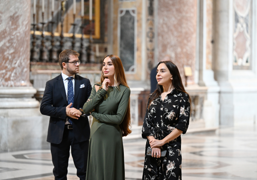 Первый вице-президент Азербайджана Мехрибан Алиева ознакомилась с реставрационными работами, проводимыми в соборе Святого Петра в Ватикане при поддержке Фонда Гейдара Алиева.