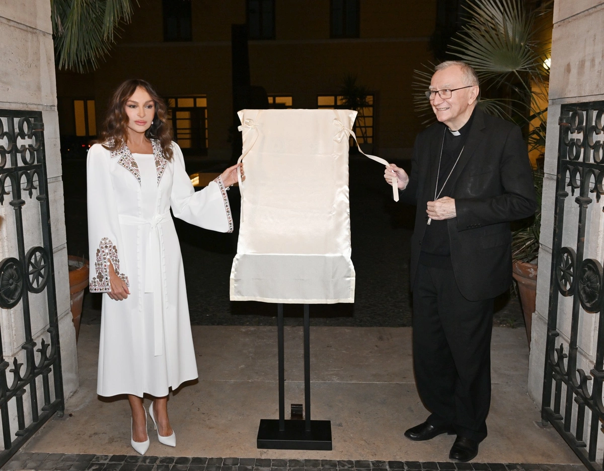 В церемонии приняли участие первый вице-президент Азербайджана Мехрибан Алиева и государственный секретарь Ватикана кардинал Пьетро Паролин.