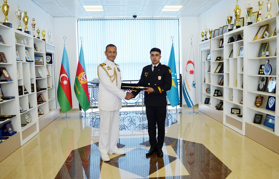 Согласно «Протоколу о намерениях по сотрудничеству в области обучения личного состава Военно-морских сил», подписанному министром обороны Азербайджанской Республики и министром обороны Итальянской Республики, лейтенанту Хюмбету Гасымову — выпускнику факультета ВМС Военного института имени Гейдара Алиева при Национальном университете обороны, окончившему обучение в 2024–2025 учебном году с отличием, вручён памятный подарок «Кортик чести» и сертификат от имени командующего ВМС Италии.
