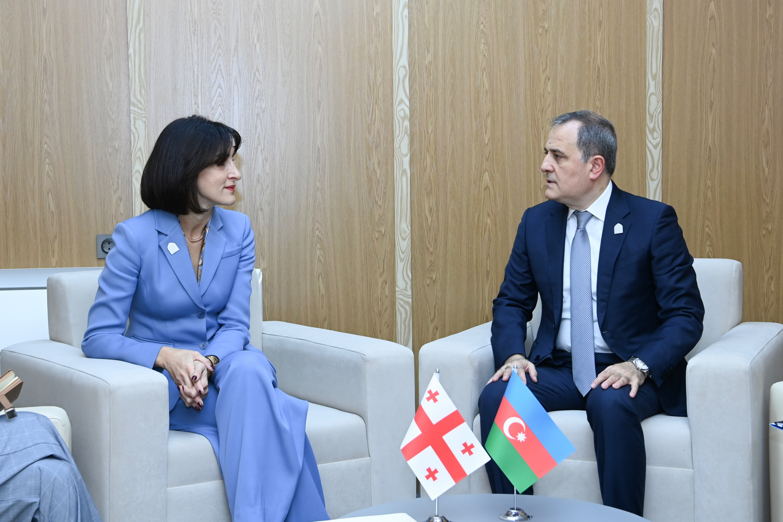 Министр иностранных дел Азербайджана Джейхун Байрамов и министр иностранных дел Грузии Мака Бочоришвили провели встречу на полях Генеральной конференции ЮНЕСКО в Самарканде.