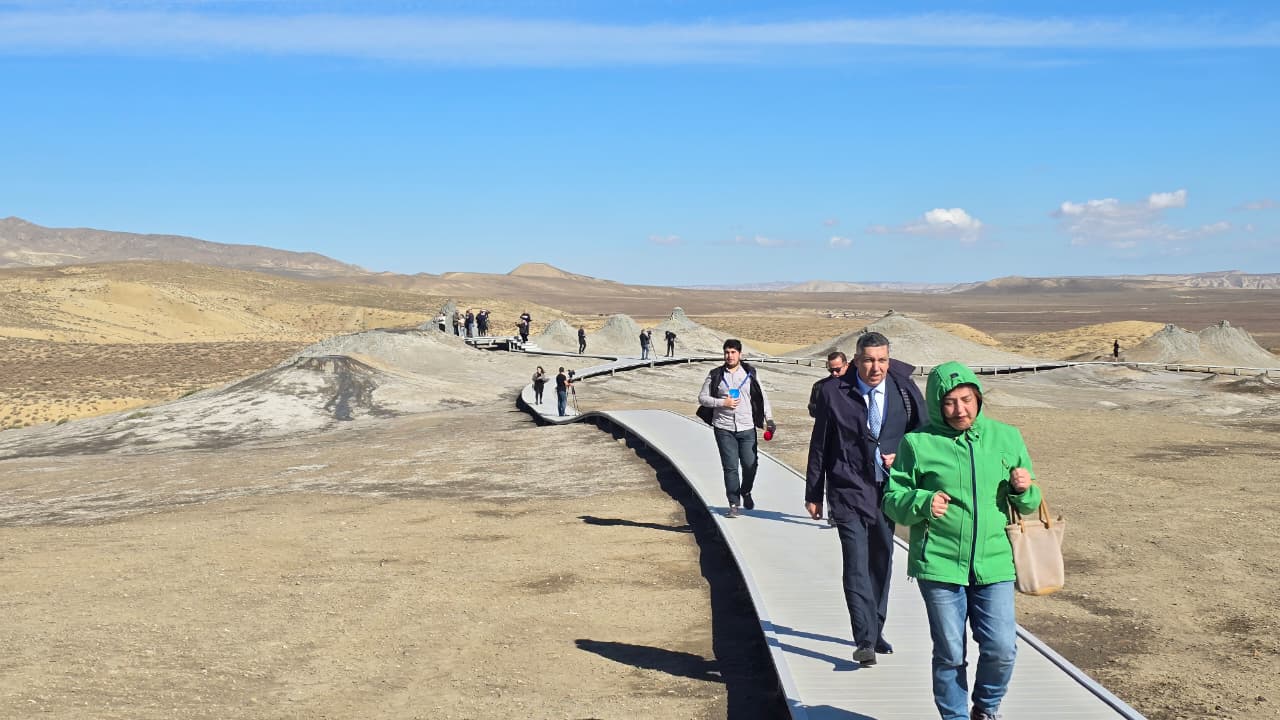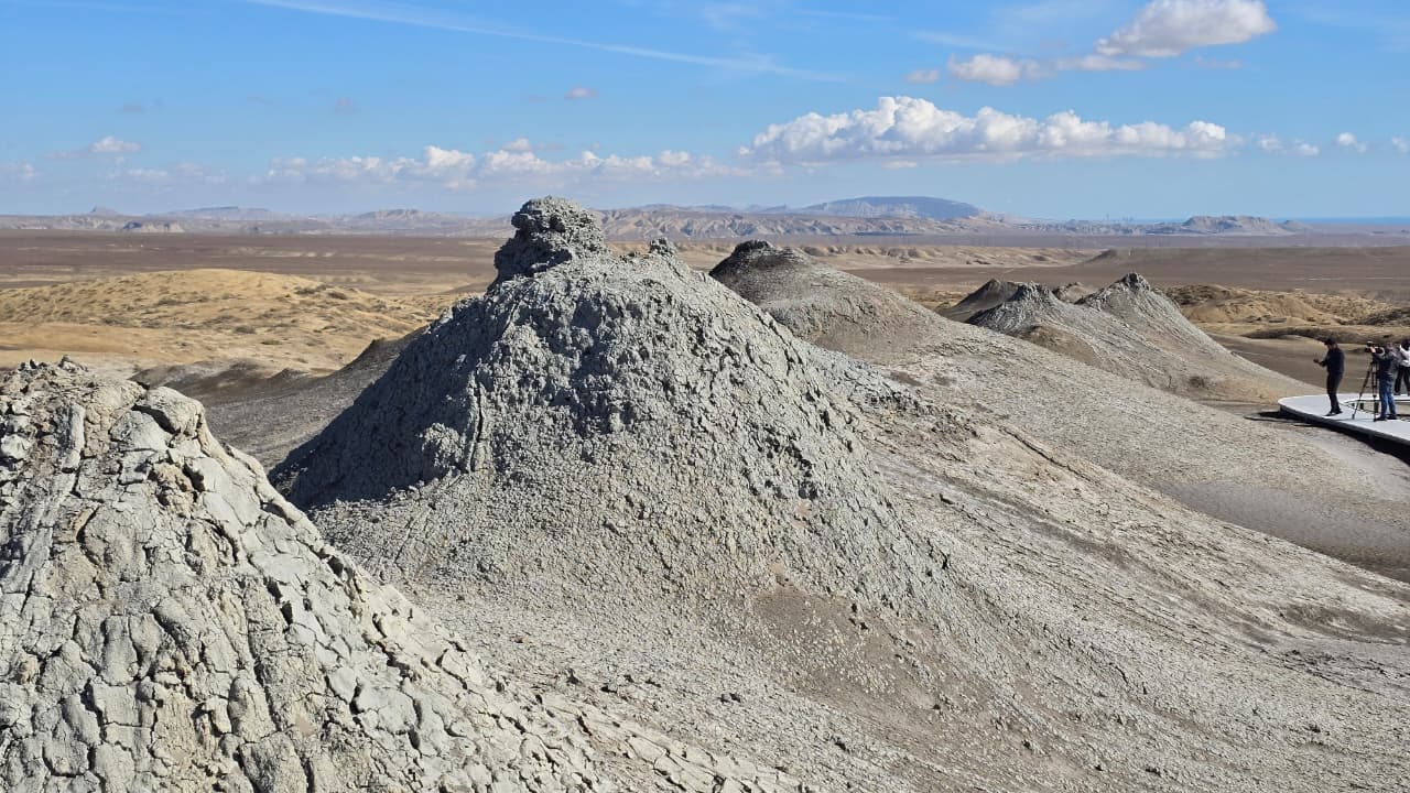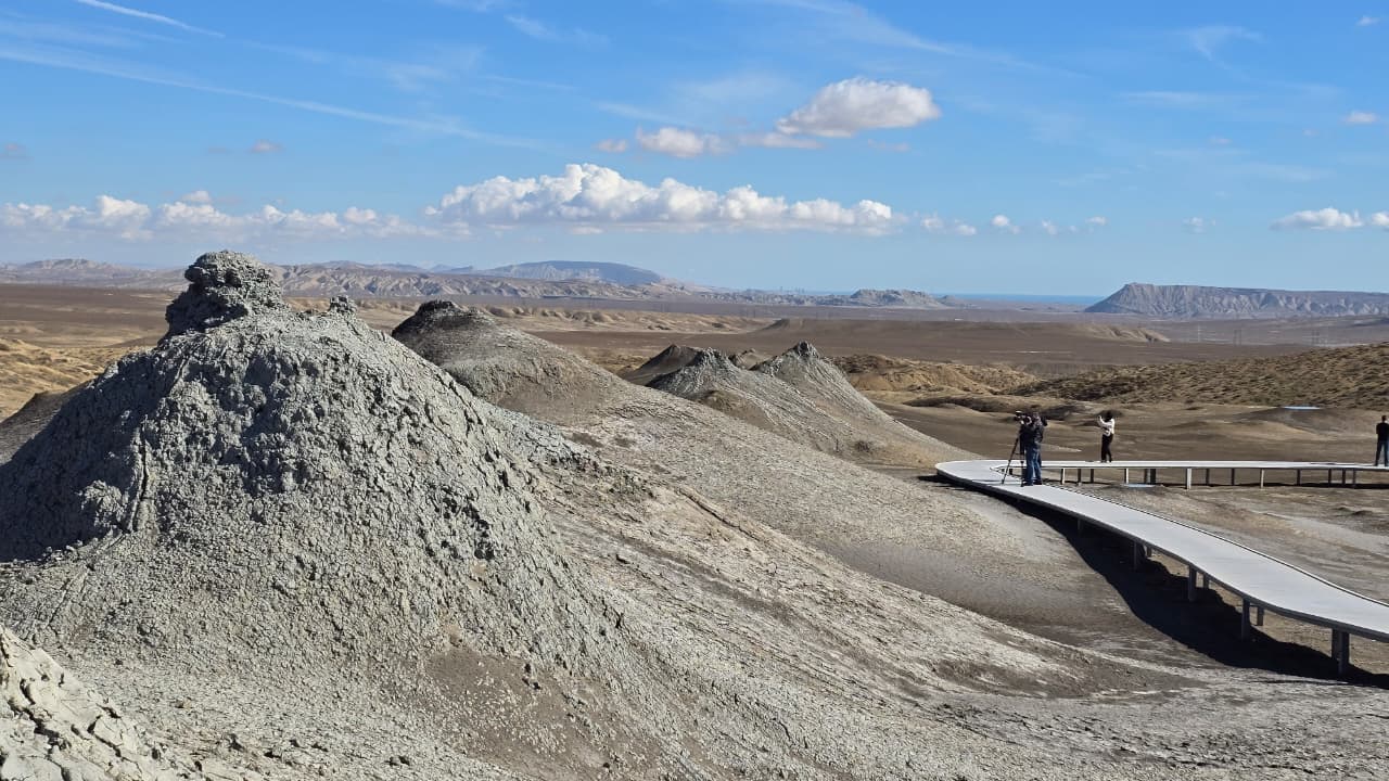 Земля под ногами пузырится, воздух пахнет метаном, а ветер гонит над пустыней холодные волны пыли. Здесь, в нескольких километрах от Баку, кажется, что ты попал на Марс. Абсолютно космический пейзаж простирается на стыке Абшеронского и Гобустанского районов, особый оттенок которому придают бурлящие повсюду жерла грязевых вулканов. В получасе езды от столицы, находится Туристический комплекс грязевых вулканов, в центре которого возвышается футуристическое белое здание музея, словно из фантастического фильма про колонизацию новой планеты. Находясь тут и вправду открываешь для себя новый Абшерон — неизвестный, дикий, таящий в себе сотни тайн и легенд. Усиливают впечатления множество извилистых холмов и раскинувшиеся солончаки, усеянные небольшими трещинами.