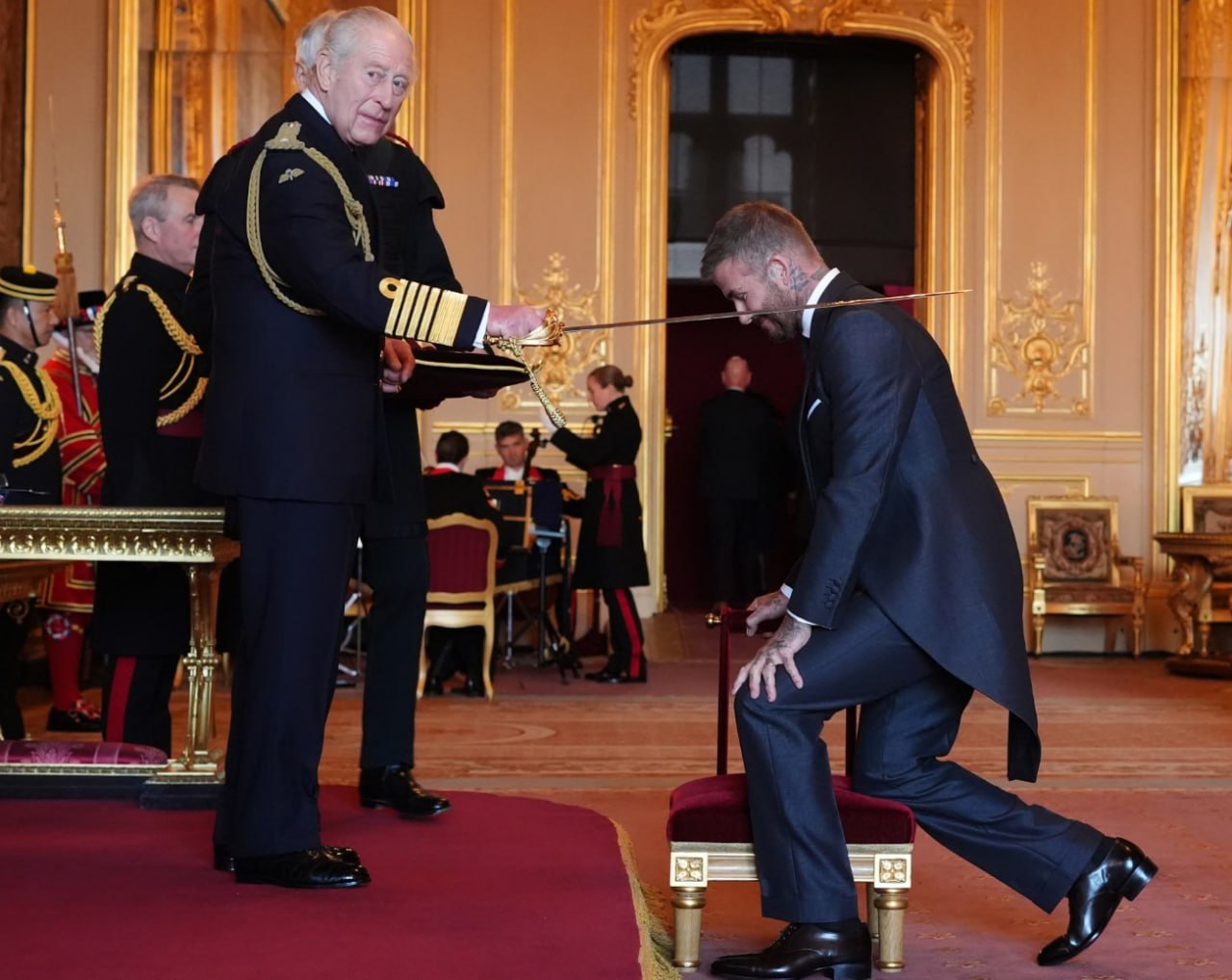 Бывший полузащитник сборной Англии Дэвид Бекхэм, которому исполнилось 50 лет, удостоен высокого рыцарского звания Великобритании. Торжественная церемония состоялась 4 ноября в графстве Беркшир, где король Карл III лично вручил спортсмену знак отличия.