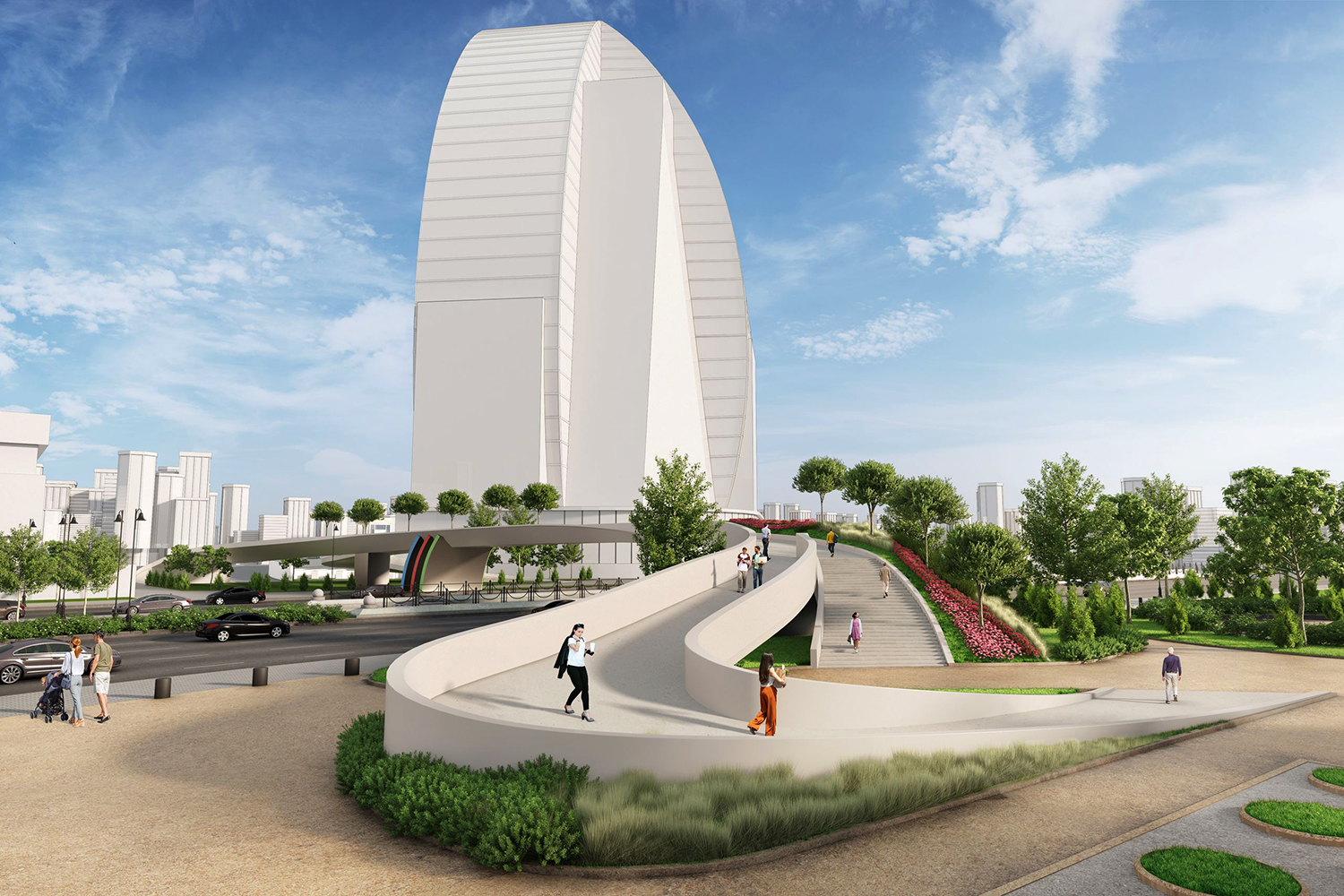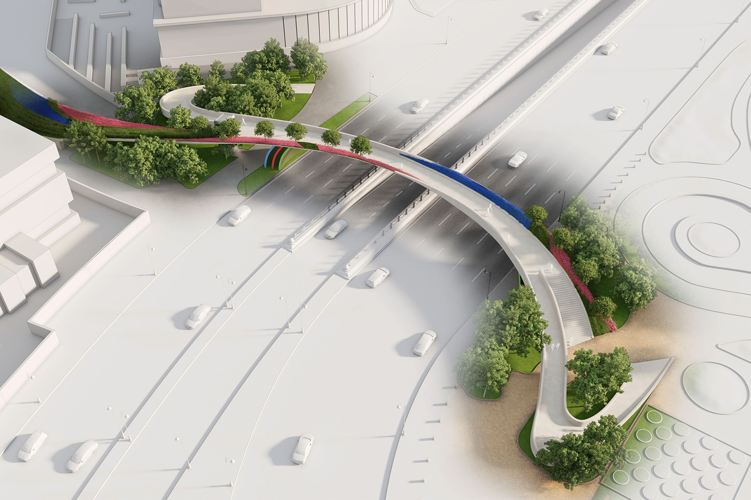 Немецкая архитектурная компания Hoffmann-Janz Architects подготовила проект пешеходного моста через улицу Юсифа Сафарова, который соединит двор отеля Ritz-Carlton с новым парковым комплексом вдоль трассы, а затем — с Центром Гейдара Алиева.