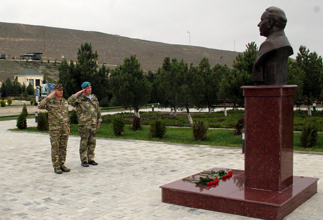 Сначала были возложены цветы к бюсту Общенационального лидера Гейдара Алиева, установленному на территории воинской части и к мемориальному комплексу в честь шехидов, была почтена их светлая память.