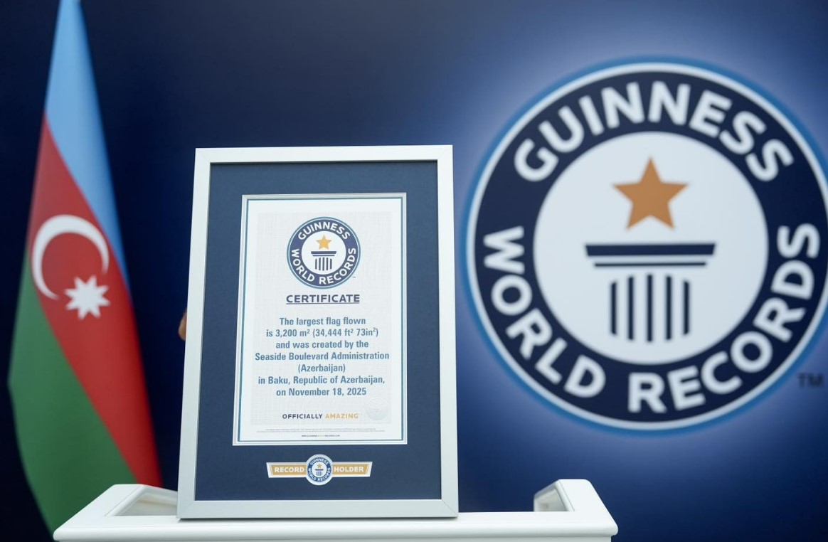 Размеры государственного флага Азербайджана, поднятого на Площади государственного флага, были заново измерены и официально зарегистрированы как новый рекорд.