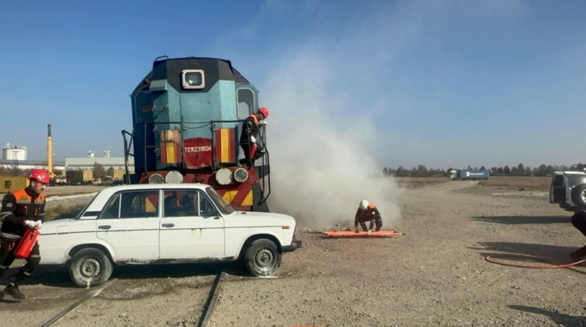 Гянджинский региональный центр Министерства по чрезвычайным ситуациям провёл учения на тему «Спасательная операция во время аварий на железнодорожном транспорте».