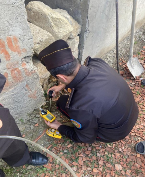 Специалисты МЧС, ПО «Азеригаз» и Исполнительной власти Абшеронского района провели обследование территории, сделали измерения и обнаружили метан (CH4). В целях предотвращения взрывов и возгораний подача газа на данном участке была временно прекращена.
