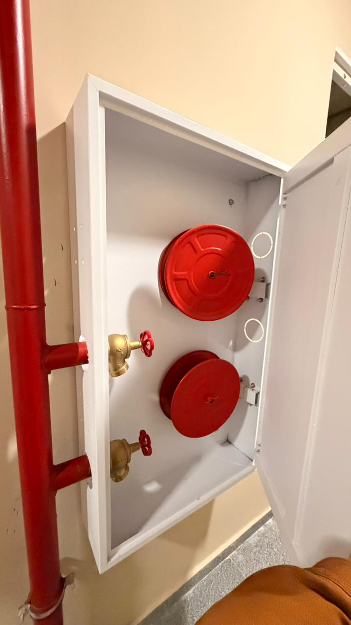 По словам жильцов, их особенно беспокоит тот факт, что несмотря на наличие пожарных кранов, ни на одном из этажей новостройки не установлено пожарных рукавов. Все катушки в пожарных щитах, где должны быть пожарные шланги — пусты. И это при том, что все здания в комплексе практически заселены. Это означает, что в случае возгорания людям будет нечем тушить пожар до приезда работников Государственной службы пожарной охраны при Министерстве по чрезвычайным ситуациям (МЧС).