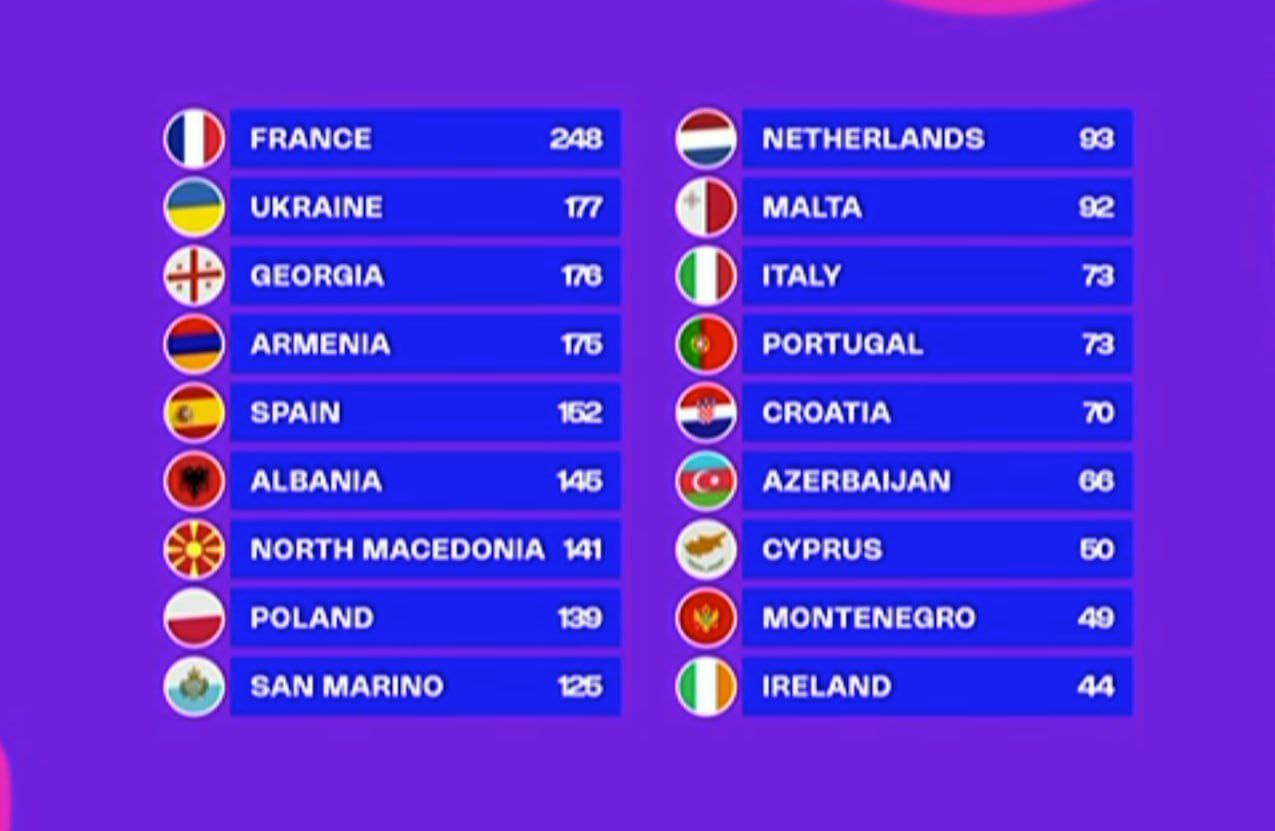 Победителем конкурса стала представительница Франции Лу Делёз с песней Ce Monde. Она набрала 152 балла от жюри и 96 баллов по результатам онлайн-голосования.