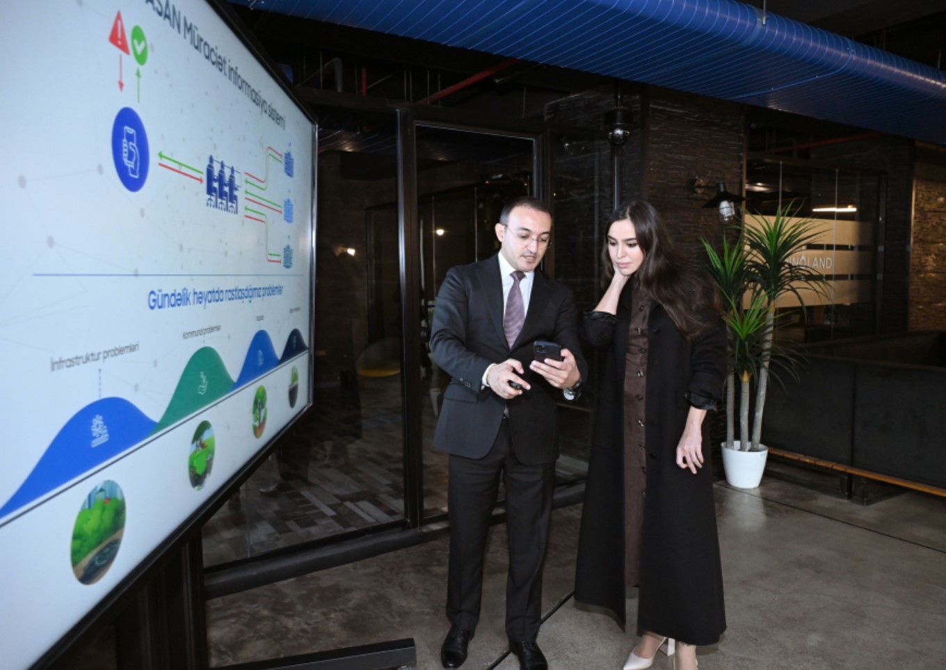 Вице-президент Фонда Гейдара Алиева Лейла Алиева также ознакомилась со стендами ASAN Məktub, Yaşıl ASAN и ABAD.