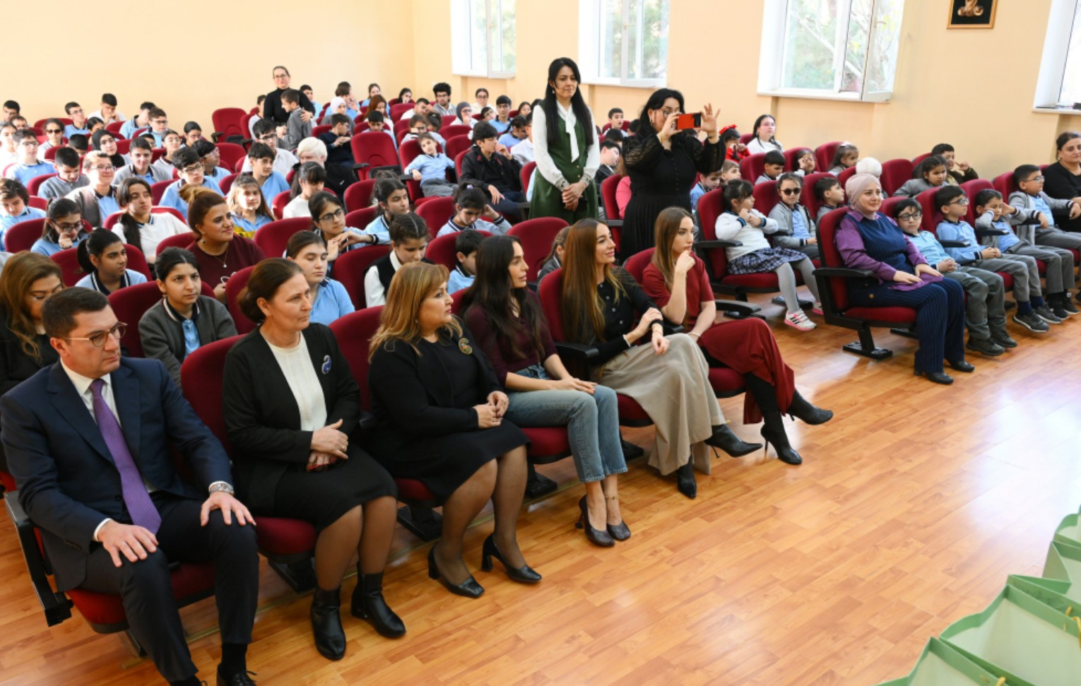 Лейла Алиева, Арзу Алиева и Алена Алиева встретились со школьниками, обучающимися здесь, поздравили их по случаю 31 декабря — Дня солидарности азербайджанцев мира и Нового года, вручили им подарки.