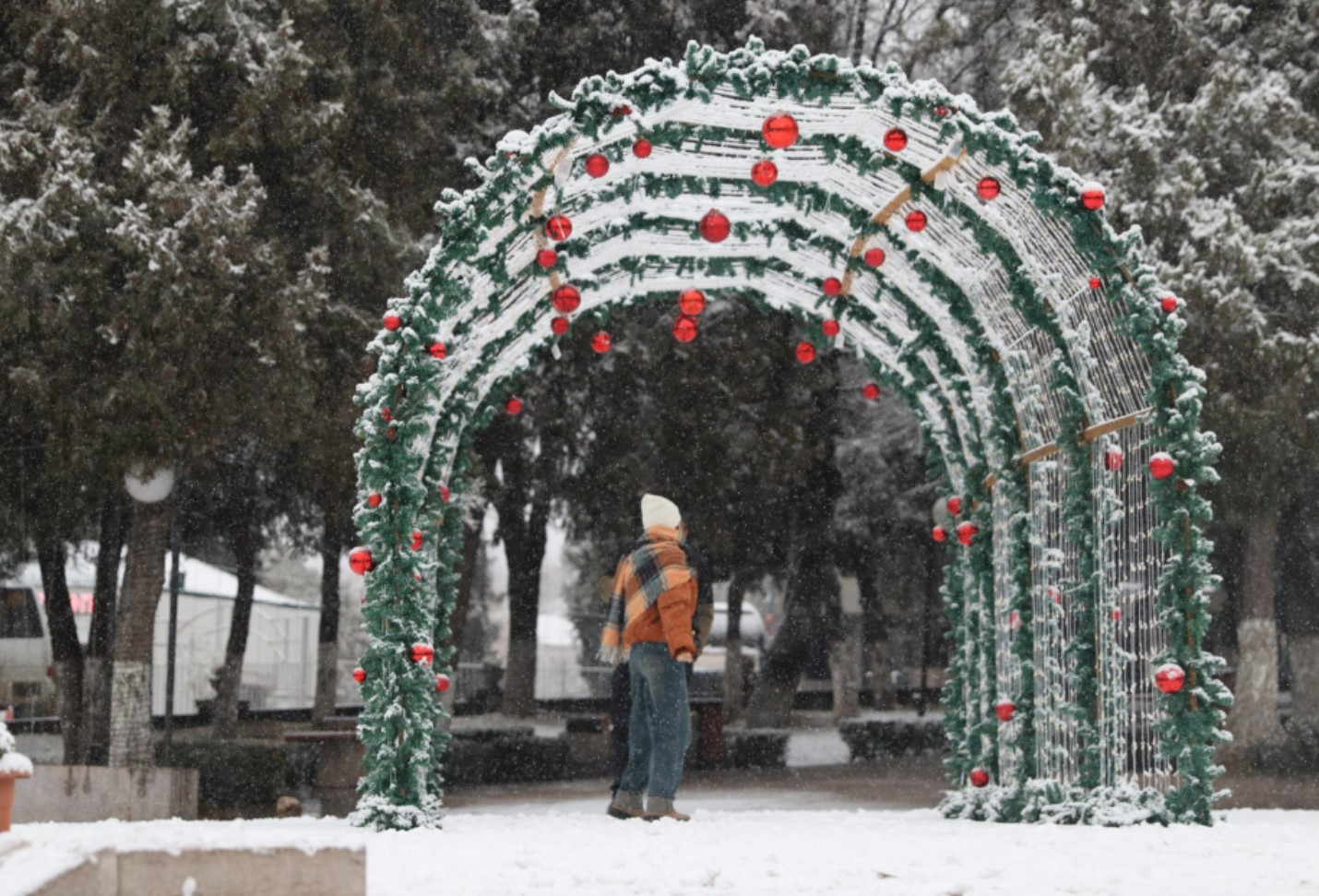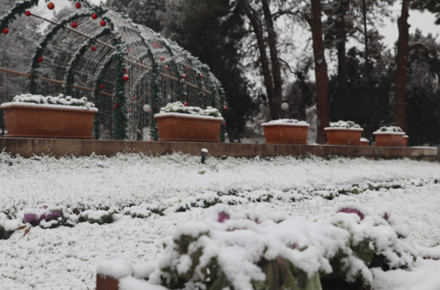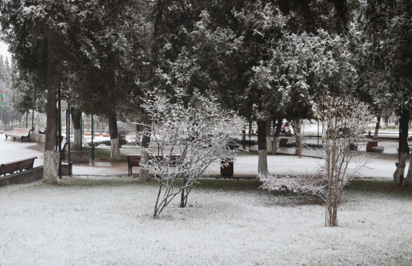 28 декабря в городе Ханкенди выпал первый снег в этом сезоне. Снег, идущий со вчерашнего вечера, придал городу зимнюю атмосферу — улицы и парки укрылись белым покрывалом.