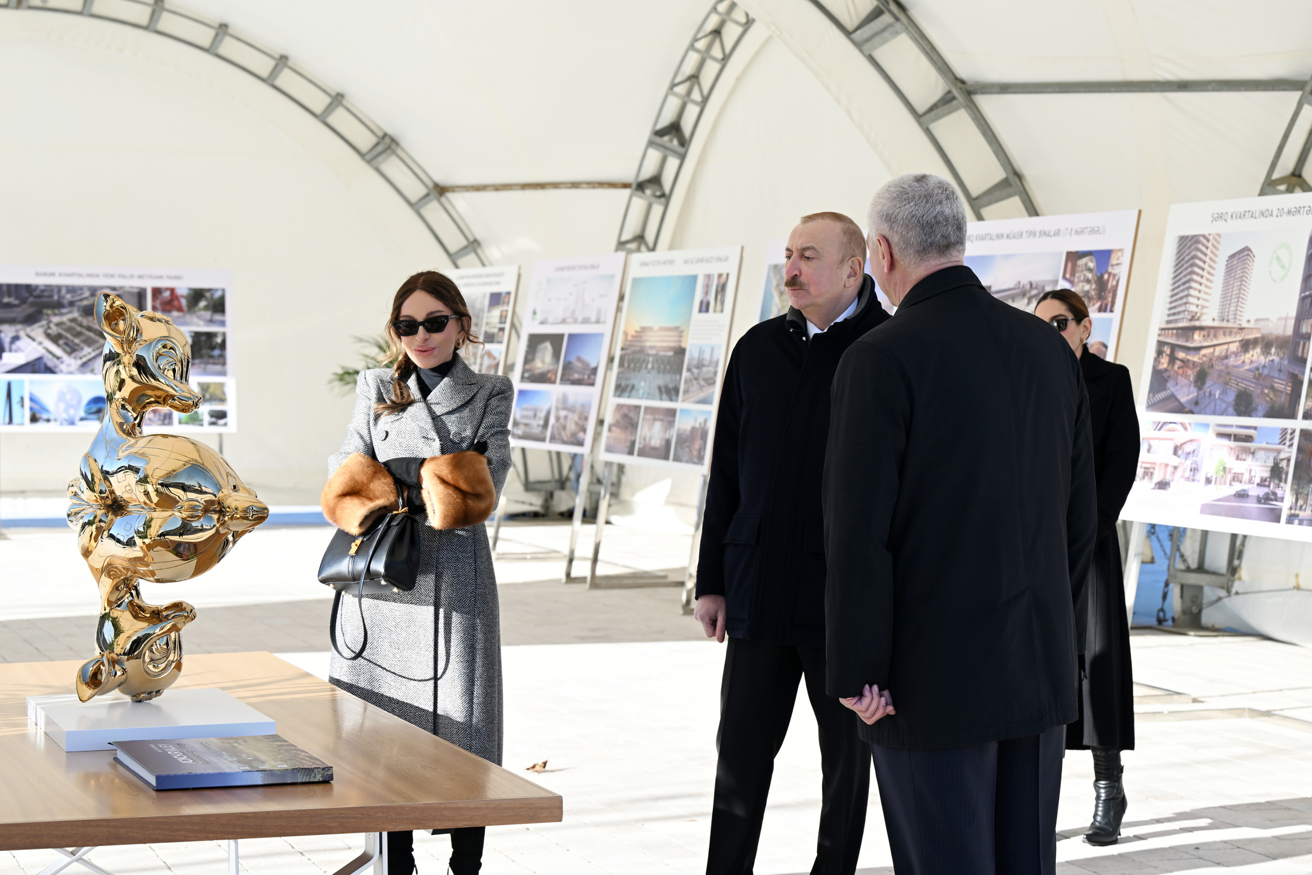 Глава государства, первая леди и их дочери ознакомились со скульптурным комплексом «Карабахские скакуны», а также с работами, проводимыми в квартале Бабек, посадили первые дубы в парке Дубовой площади, приняли участие в открытии площади «Заман» и расположенного здесь пешеходного моста.