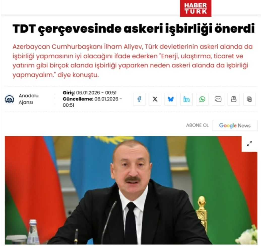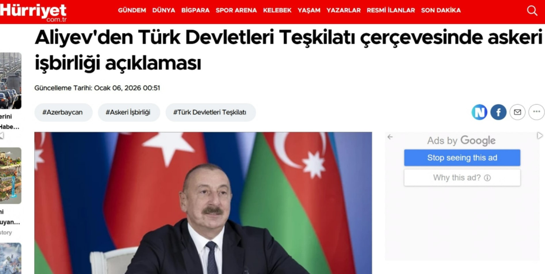 Ведущие турецкие медиа также широко осветили интервью президента Азербайджана местным телеканалам. Телеканалы, информационные агентства и газеты братской страны уделили внимание взглядам азербайджанского лидера на важность оборонного сотрудничества в рамках Организации тюркских государств, а также заявлениям президента Ильхама Алиева об углублении союзнических отношений с Турцией.