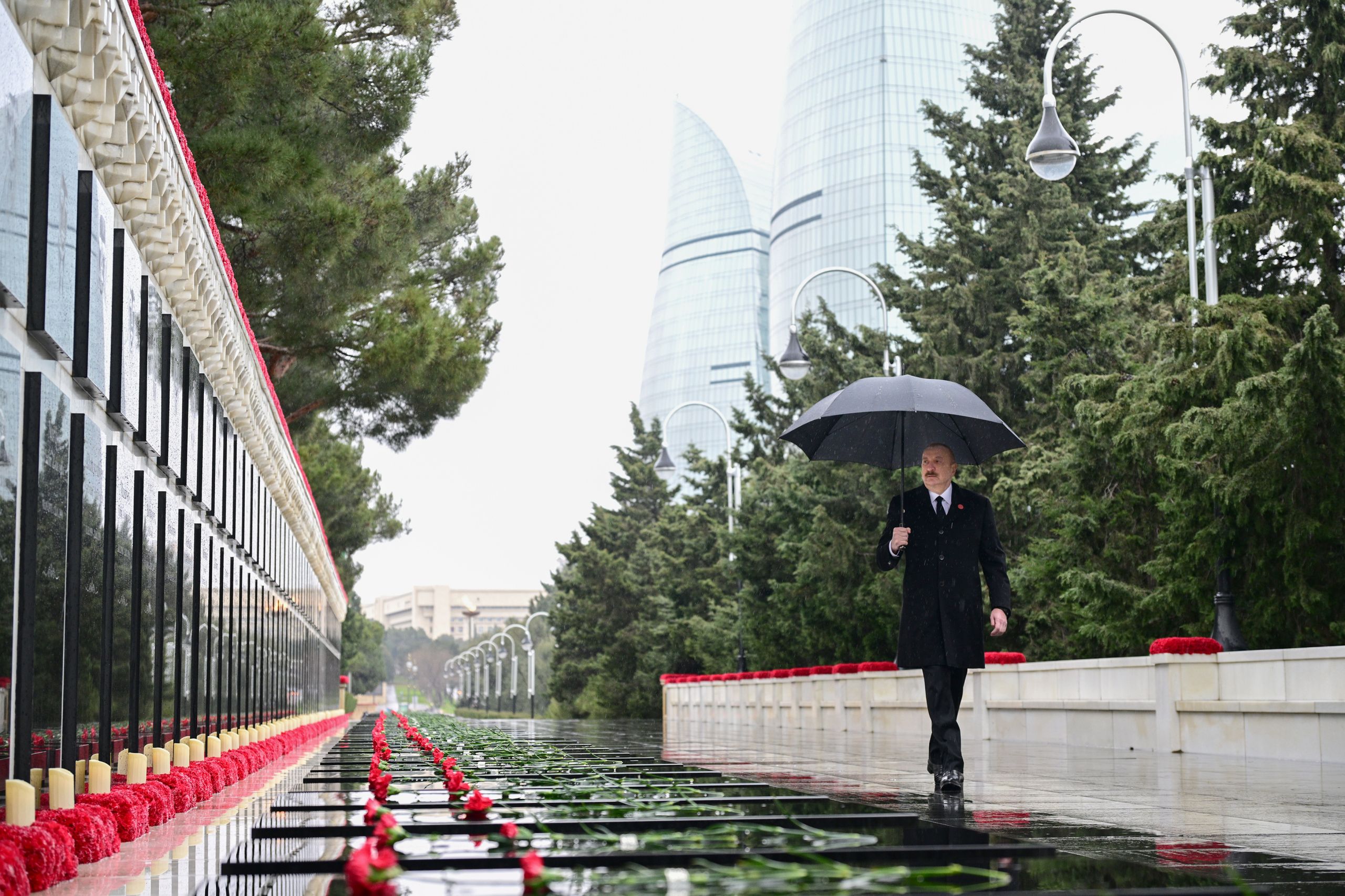 Президент Азербайджана Ильхам Алиев в Шехидляр хиябаны почтил светлую память шехидов 20 Января.