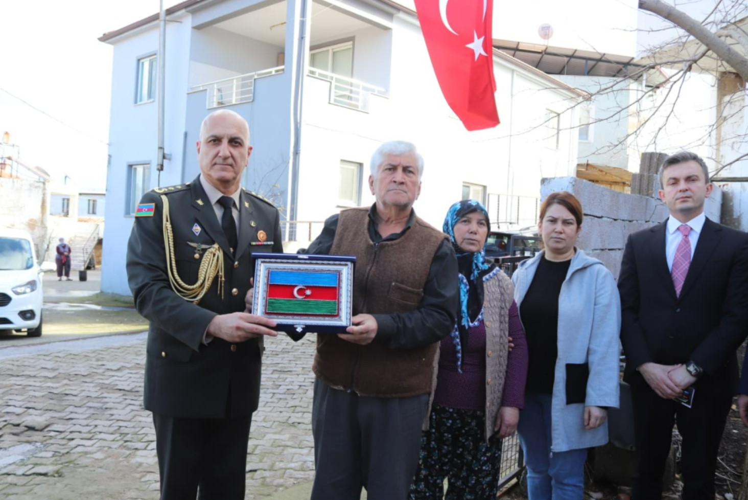 Отцу героя передан азербайджанский флаг как символ нерушимости братства и единства Турции и Азербайджана. Визит сопровождали представители Министерства национальной обороны Турции.